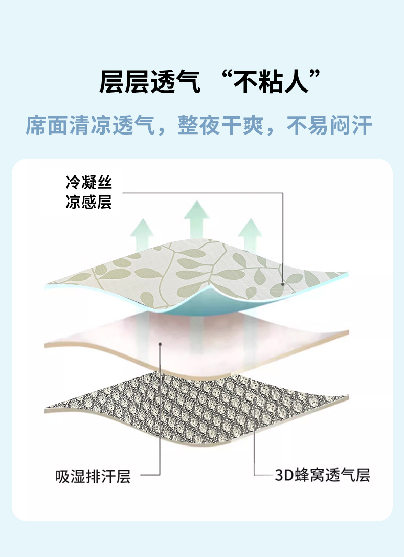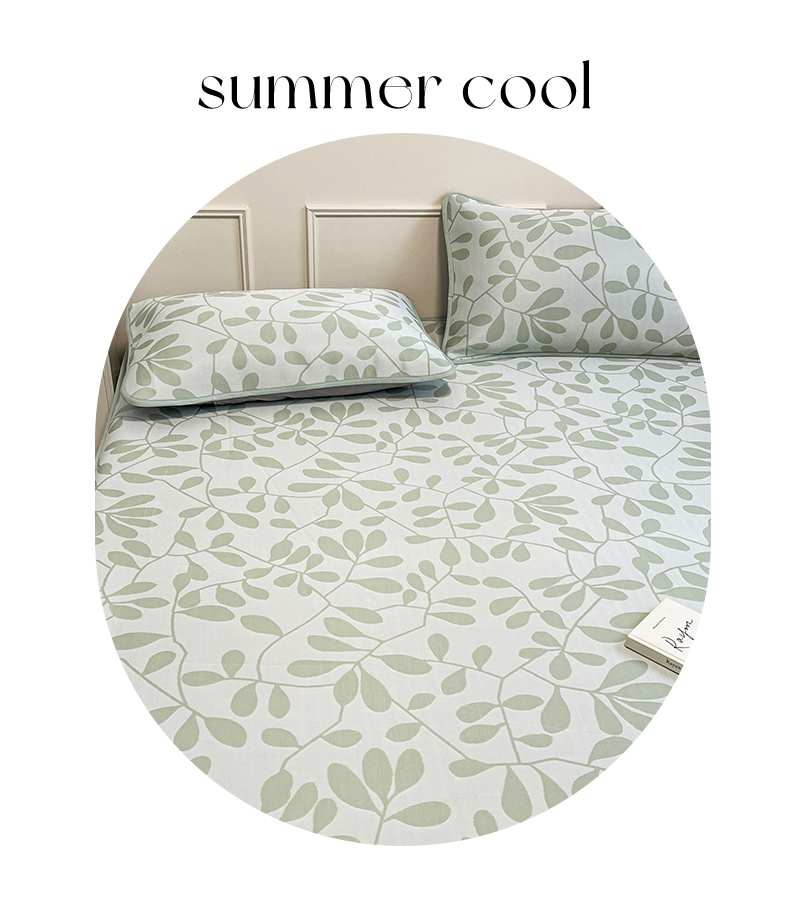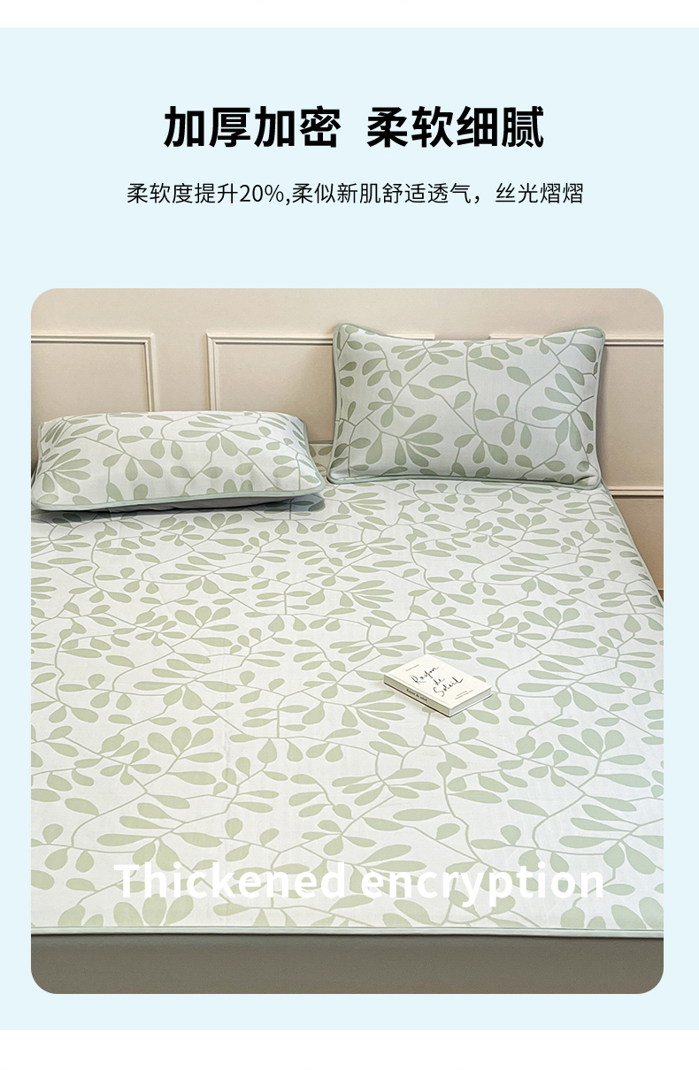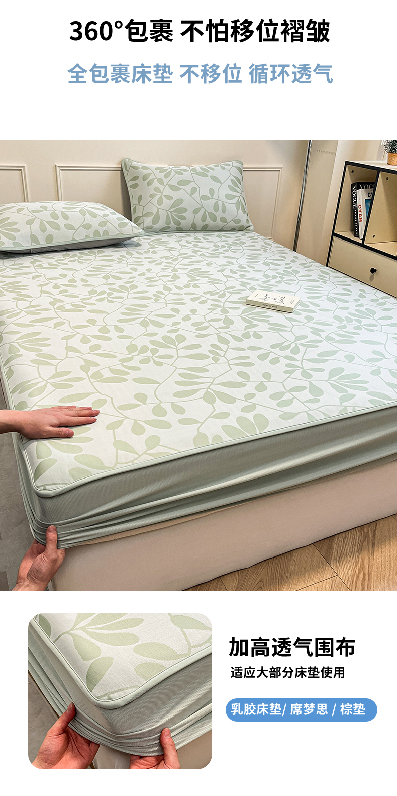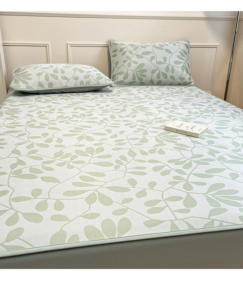 商品名称:宜代光年 2025新款冷凝丝可水洗提花凉感席-床笠款 叶繁-绿