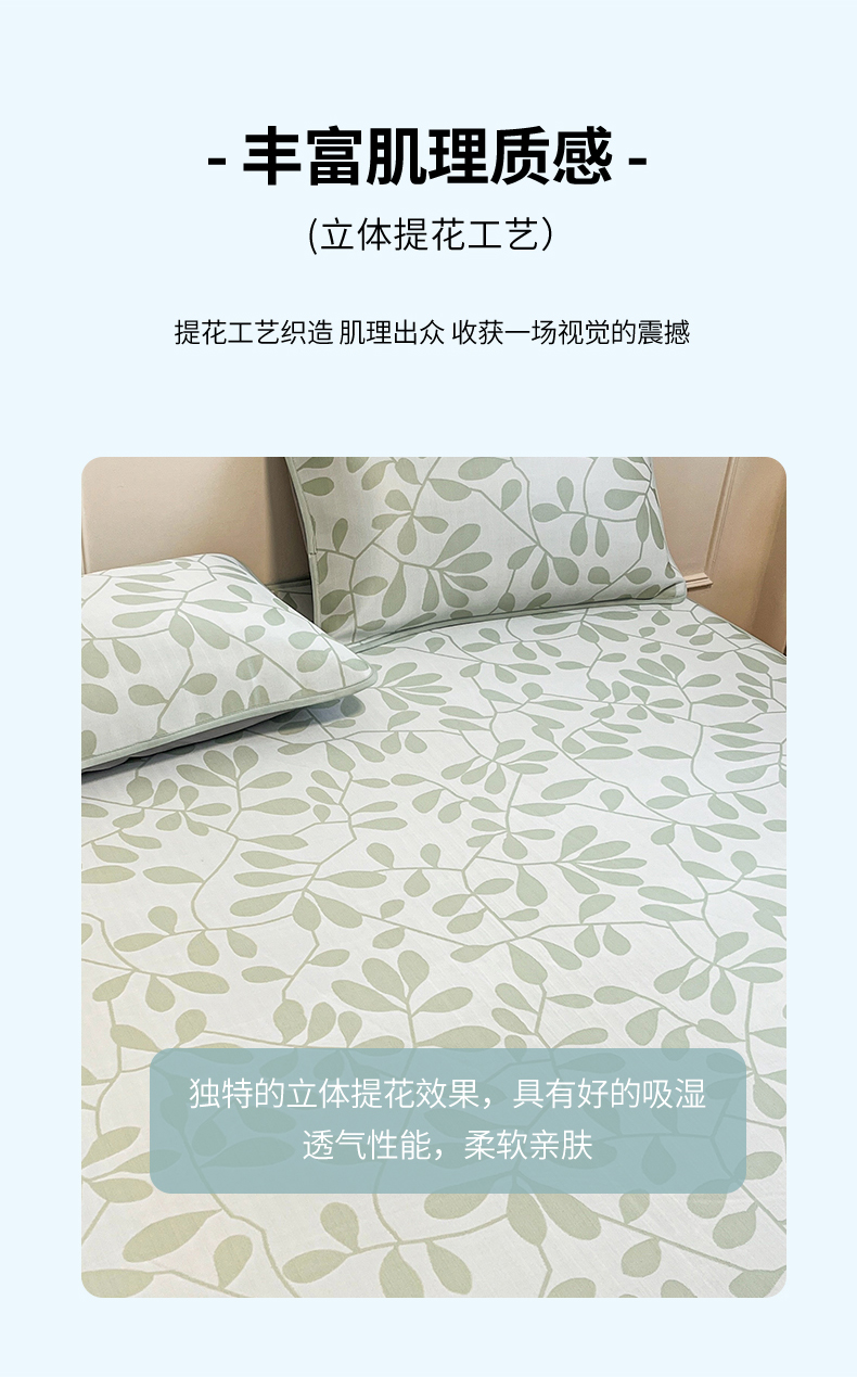 宜代光年 2025新款冷凝丝可水洗提花凉感席-床笠款 叶繁-绿