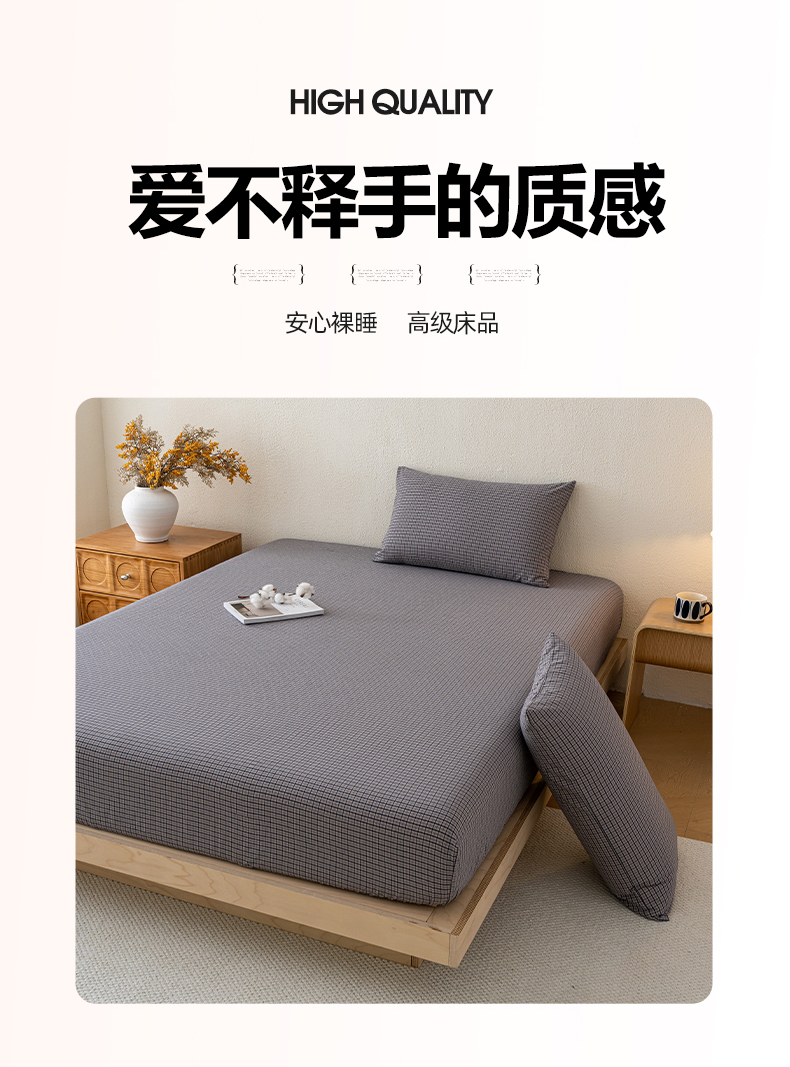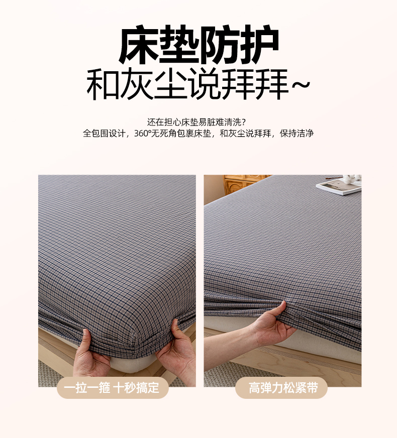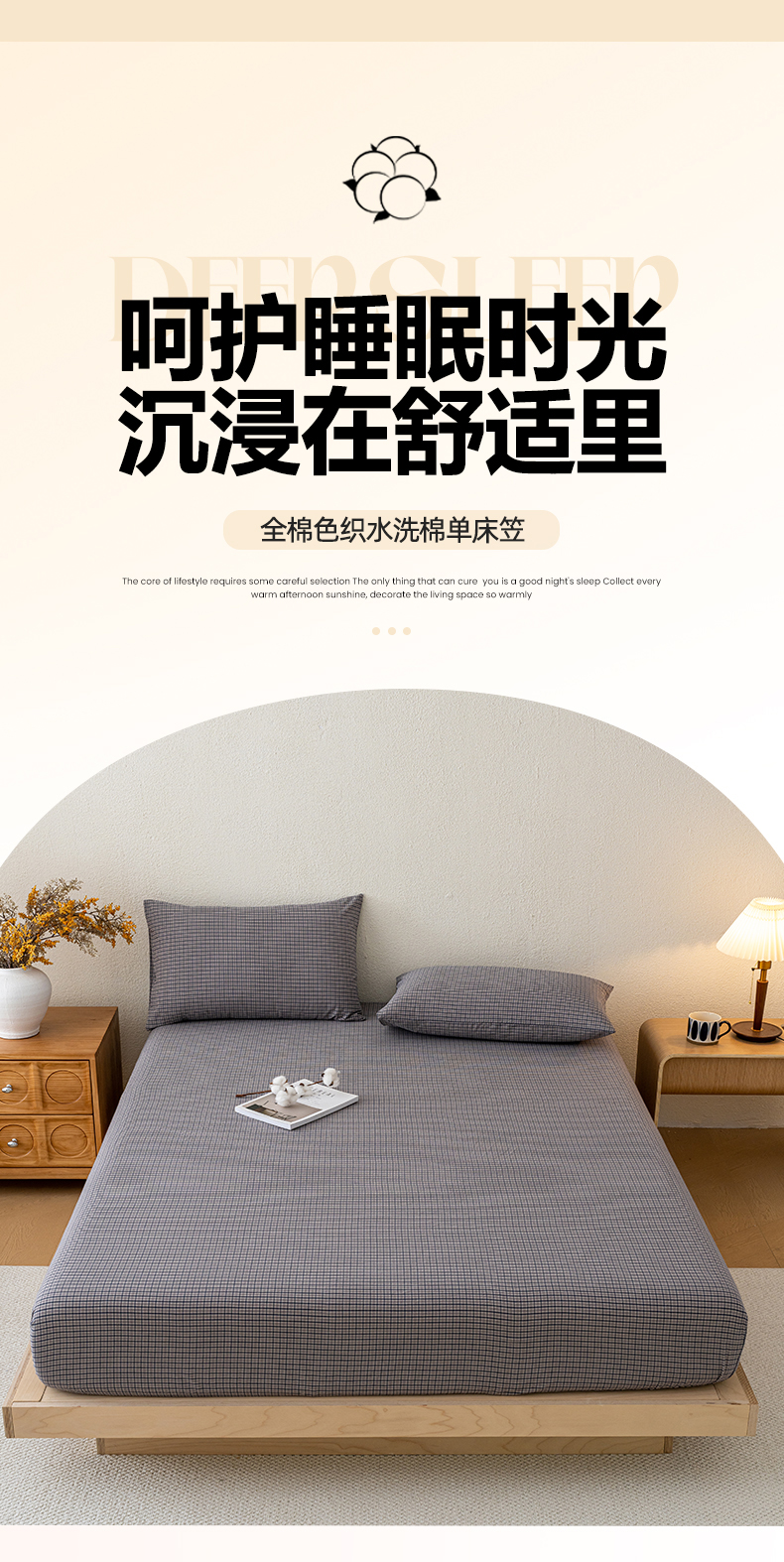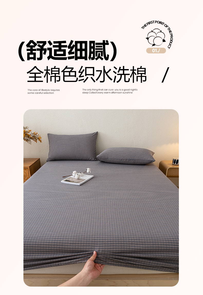 吉象家纺 2025新款全棉色织水洗棉床笠三件套 极目