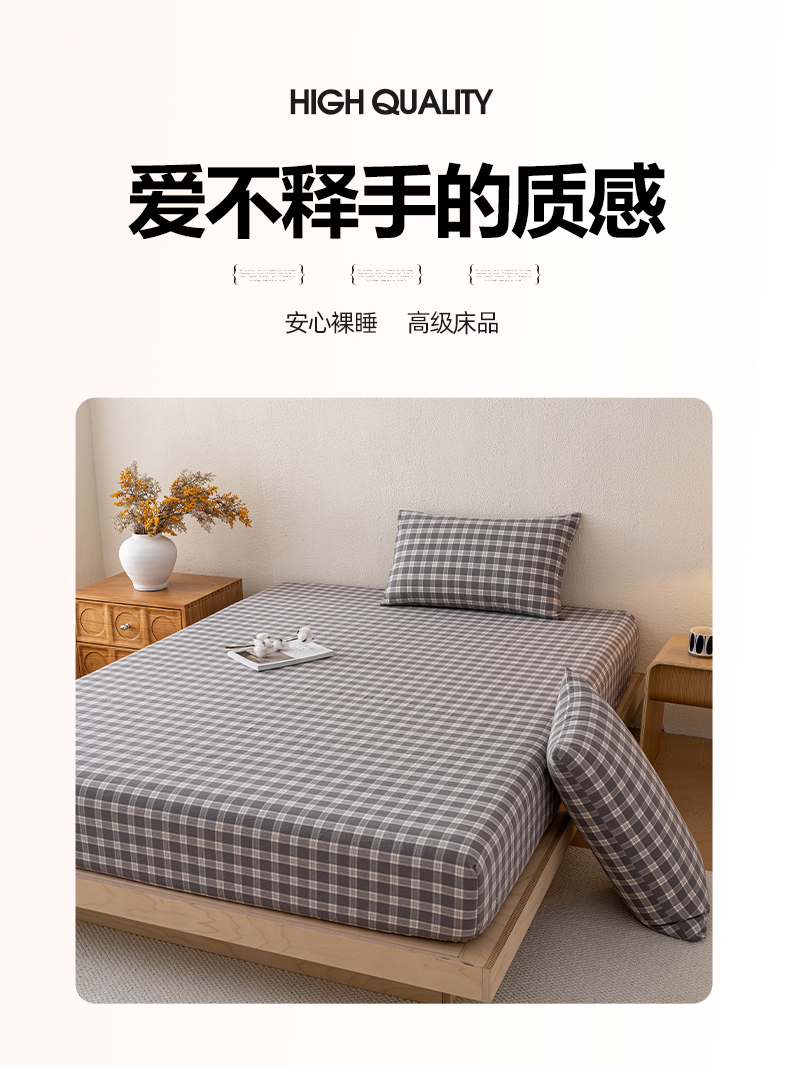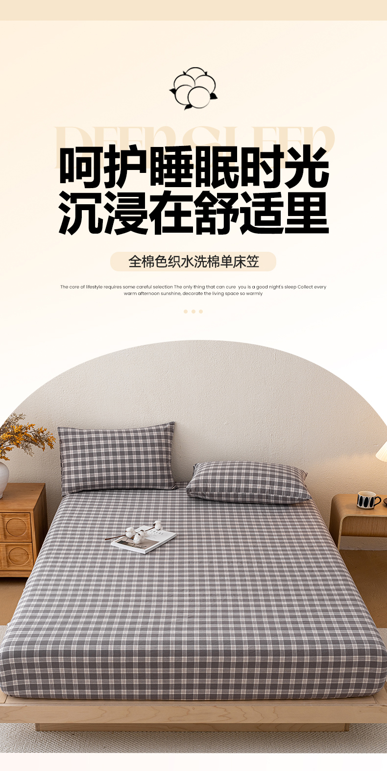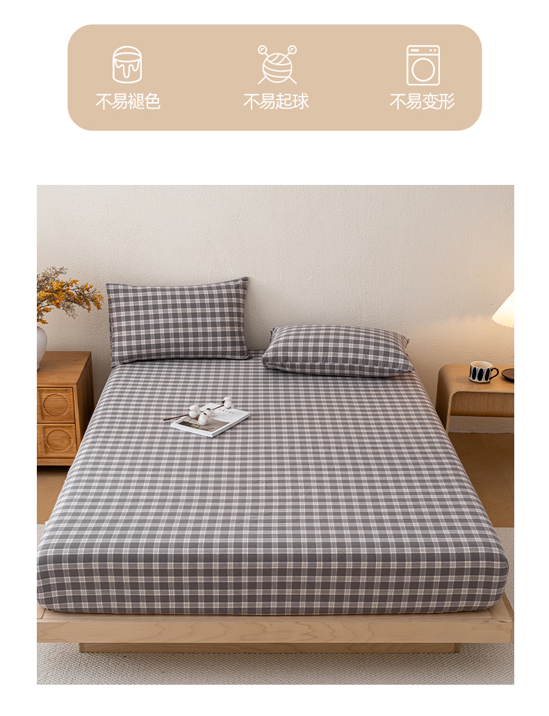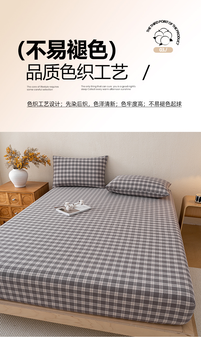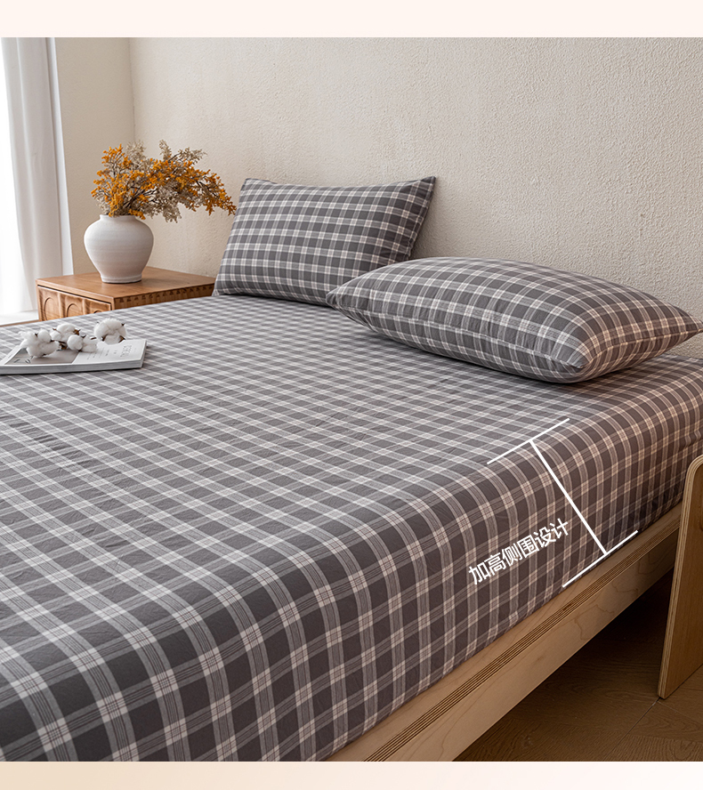 商品名称:吉象家纺 2025新款全棉色织水洗棉床笠三件套 青春告白灰