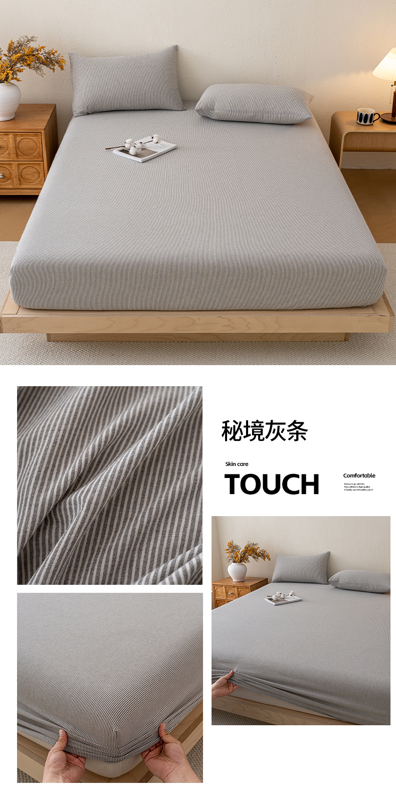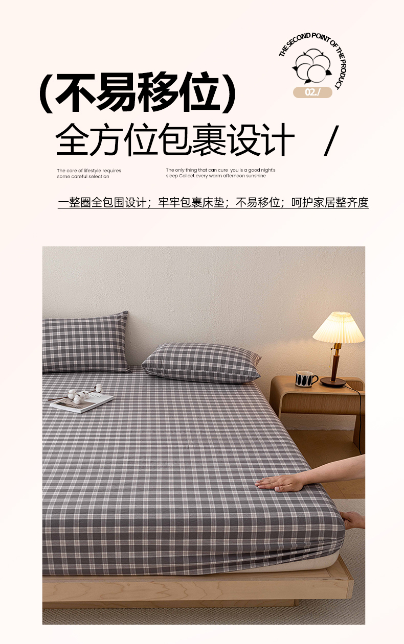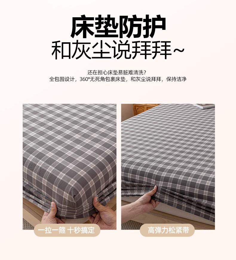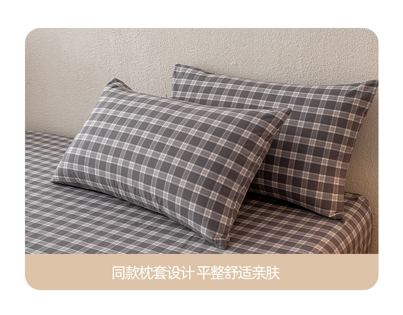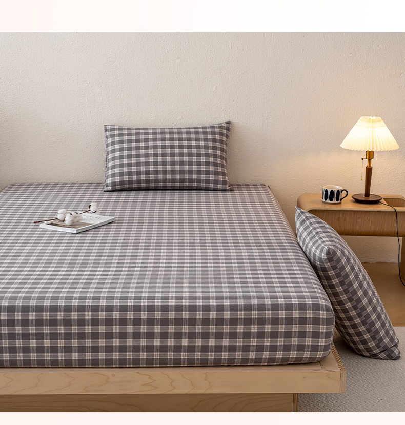 商品名称:吉象家纺 2025新款全棉色织水洗棉床笠三件套 青春告白灰