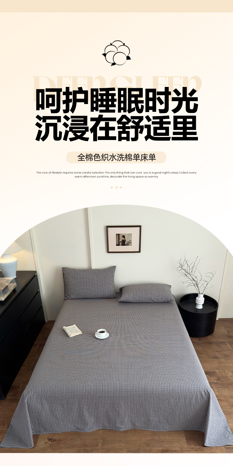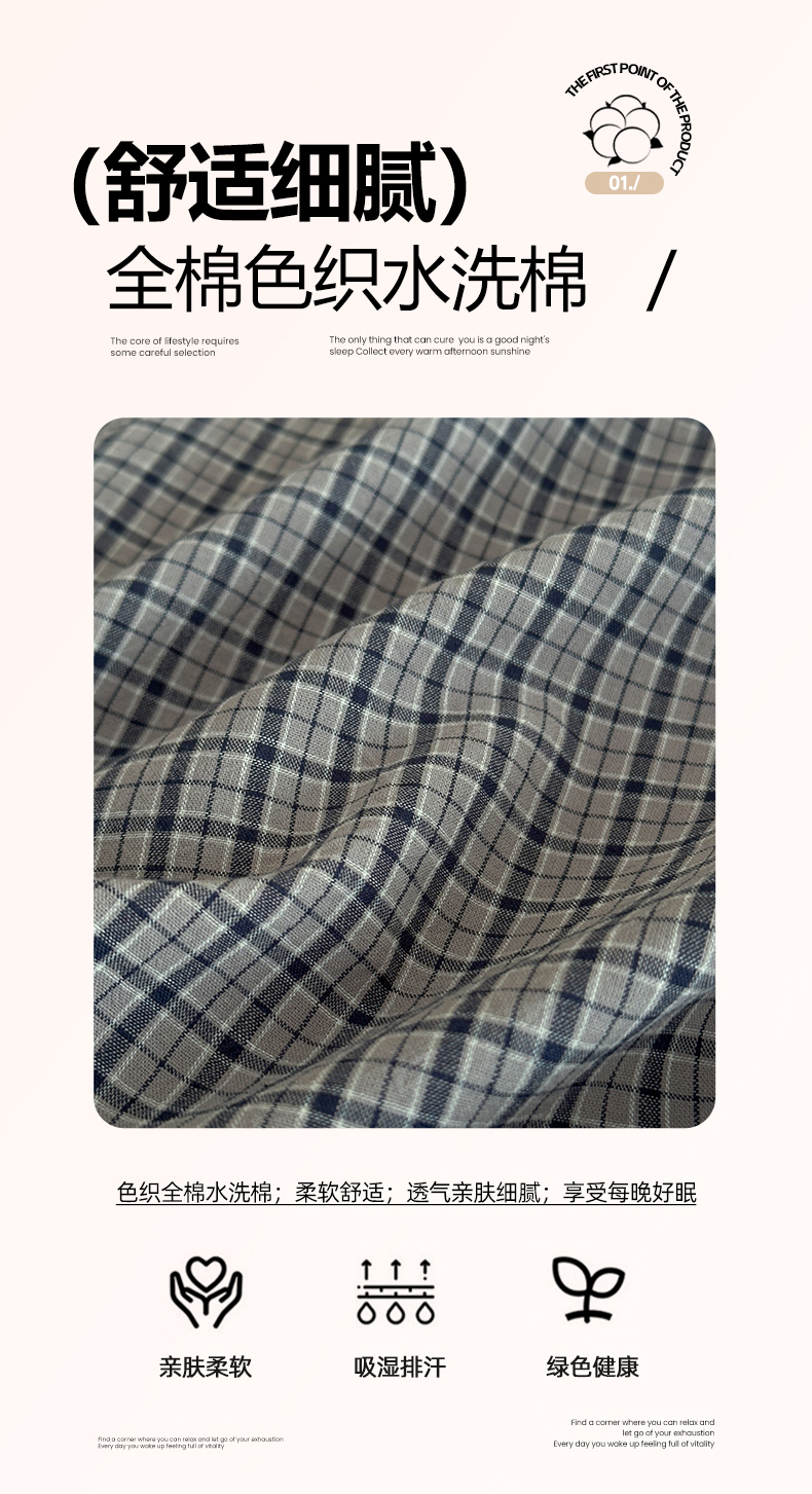 • 91家纺网 家纺一手货源 找家纺 吉象家纺 2025新款全棉色织水洗棉床单三件套 极目