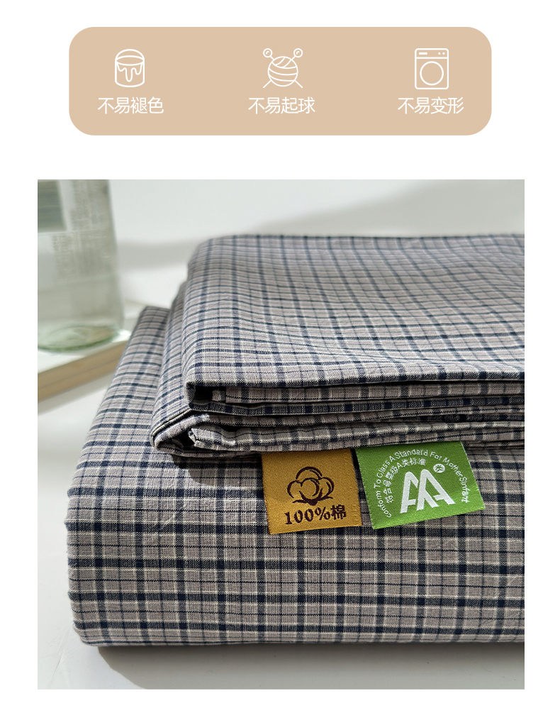 吉象家纺 2025新款全棉色织水洗棉床单三件套 极目