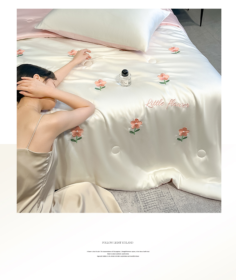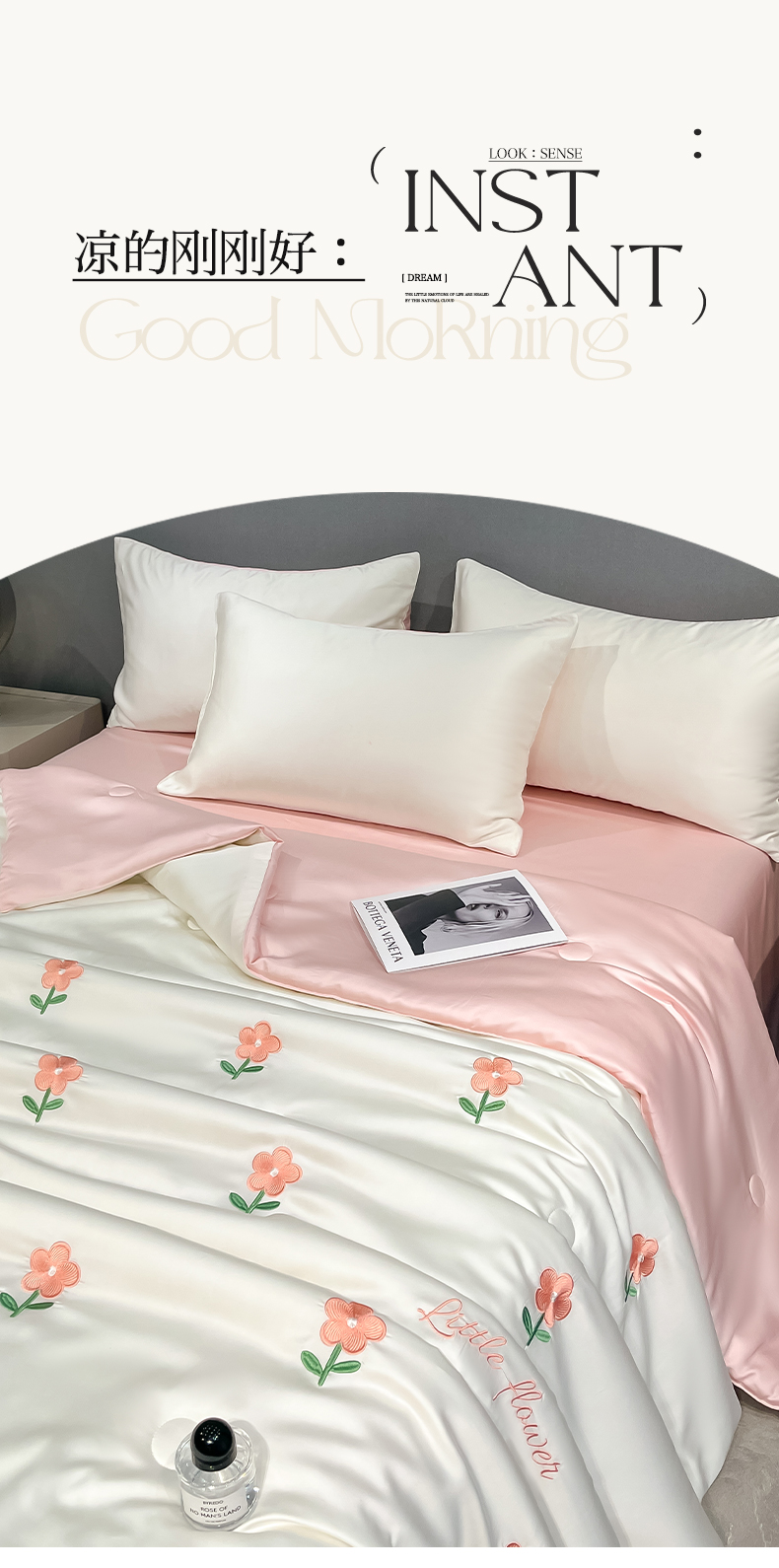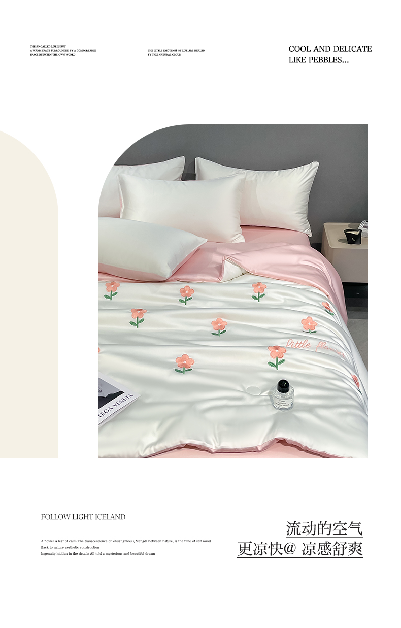 当前位置: 91家纺网 > 商品网购 > 床品套件 > 四件套 > 夏被四件套 > 如一 2025新款精绣系列水洗冰丝夏被四件套 小红花-奶白粉