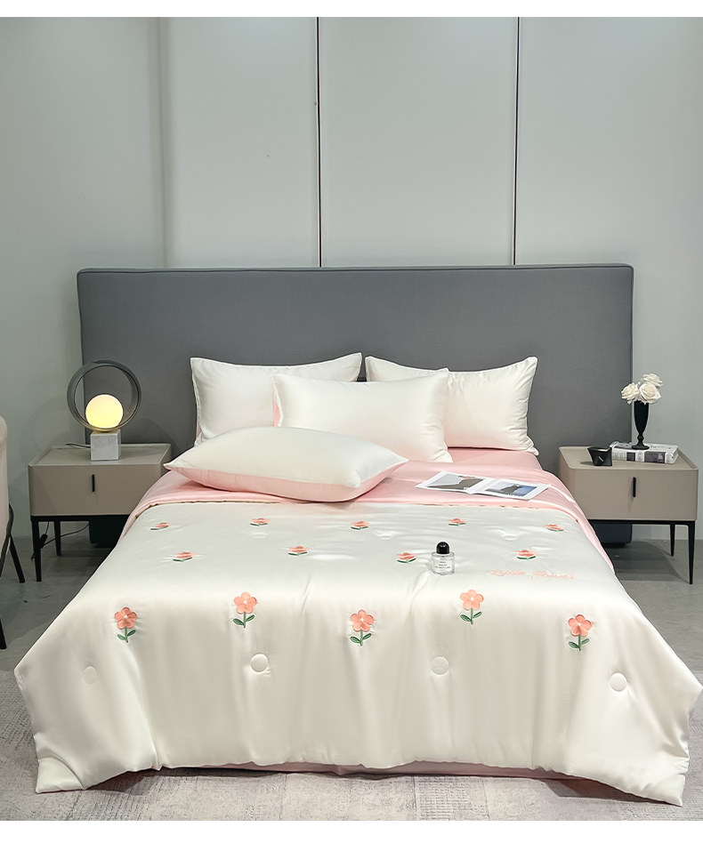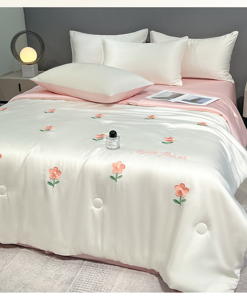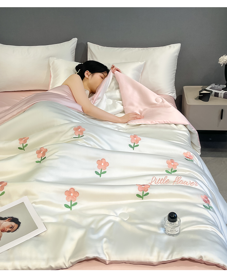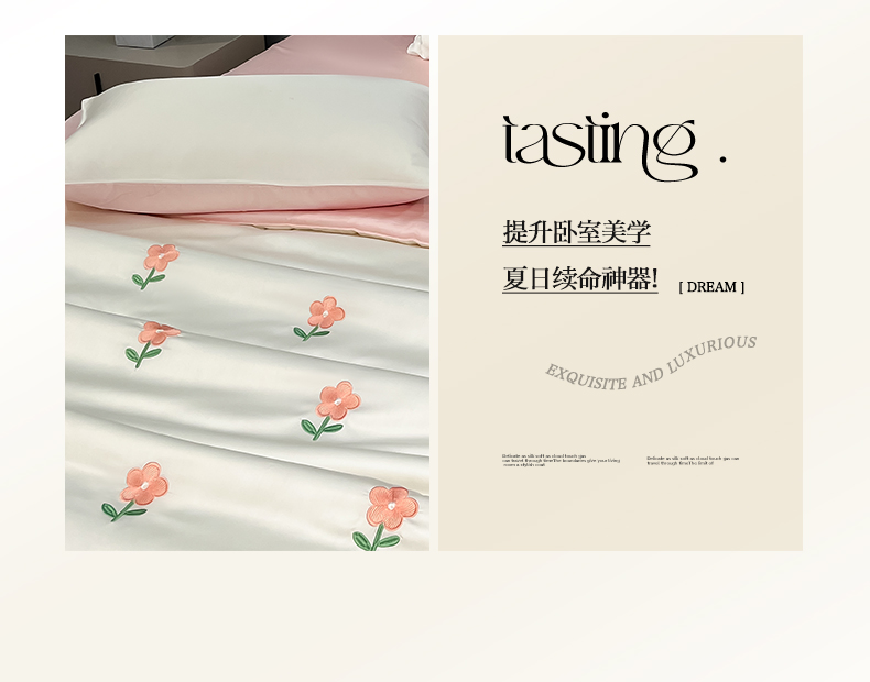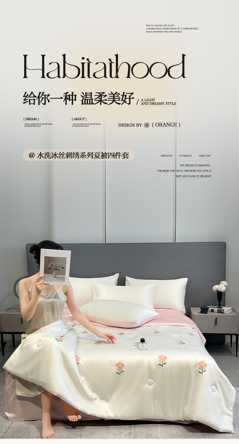 当前位置: 91家纺网 > 商品网购 > 床品套件 > 四件套 > 夏被四件套 > 如一 2025新款精绣系列水洗冰丝夏被四件套 小红花-奶白粉