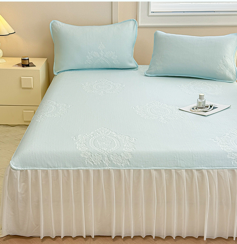 布卢姆床垫 2025新款A类PE乙纶冰豆豆凉席床裙款 蝴蝶花镜 蓝