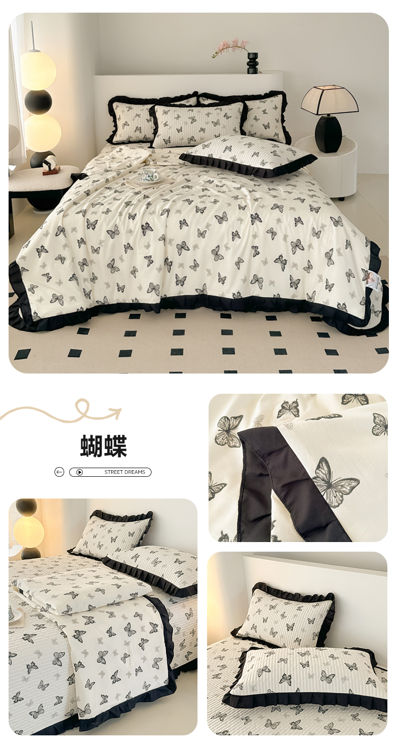 (总)同田2025新款床盖夏被四件套,丁香紫,黑蝴蝶,腊肠小狗,梦幻粉,奶白,天空蓝