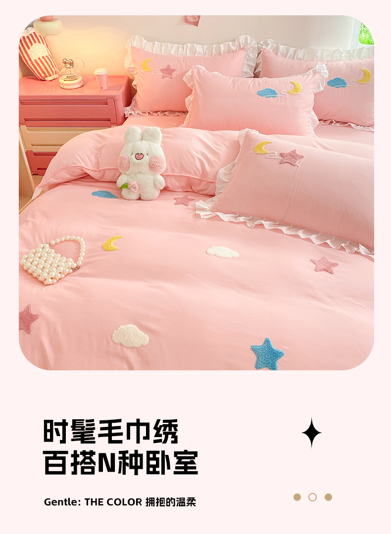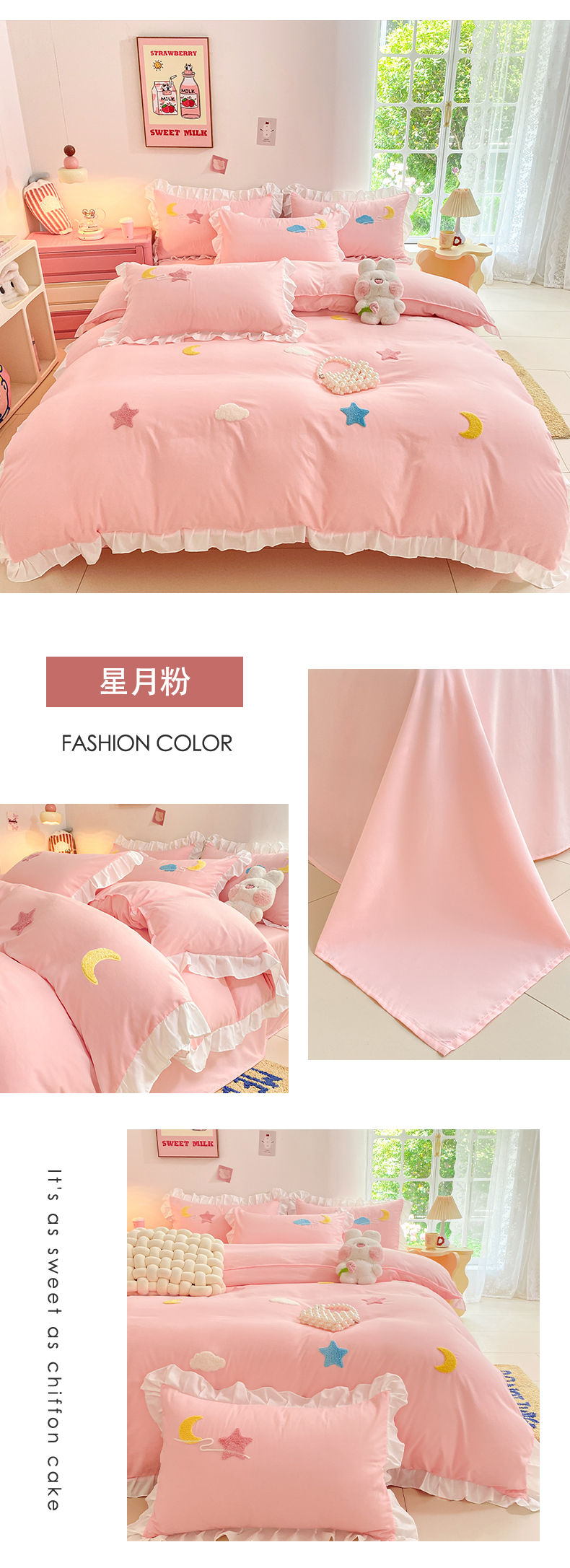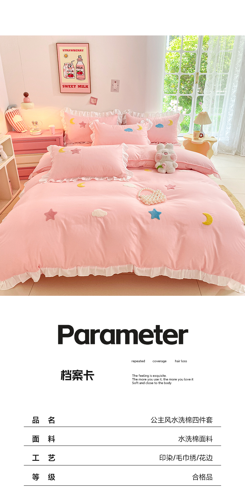 当前位置: 91家纺网 > 商品网购 > 床品套件 > 四件套 > 水洗棉四件套 > 雨菲家纺 2025新款公主风水洗棉四件套-星月 星月粉