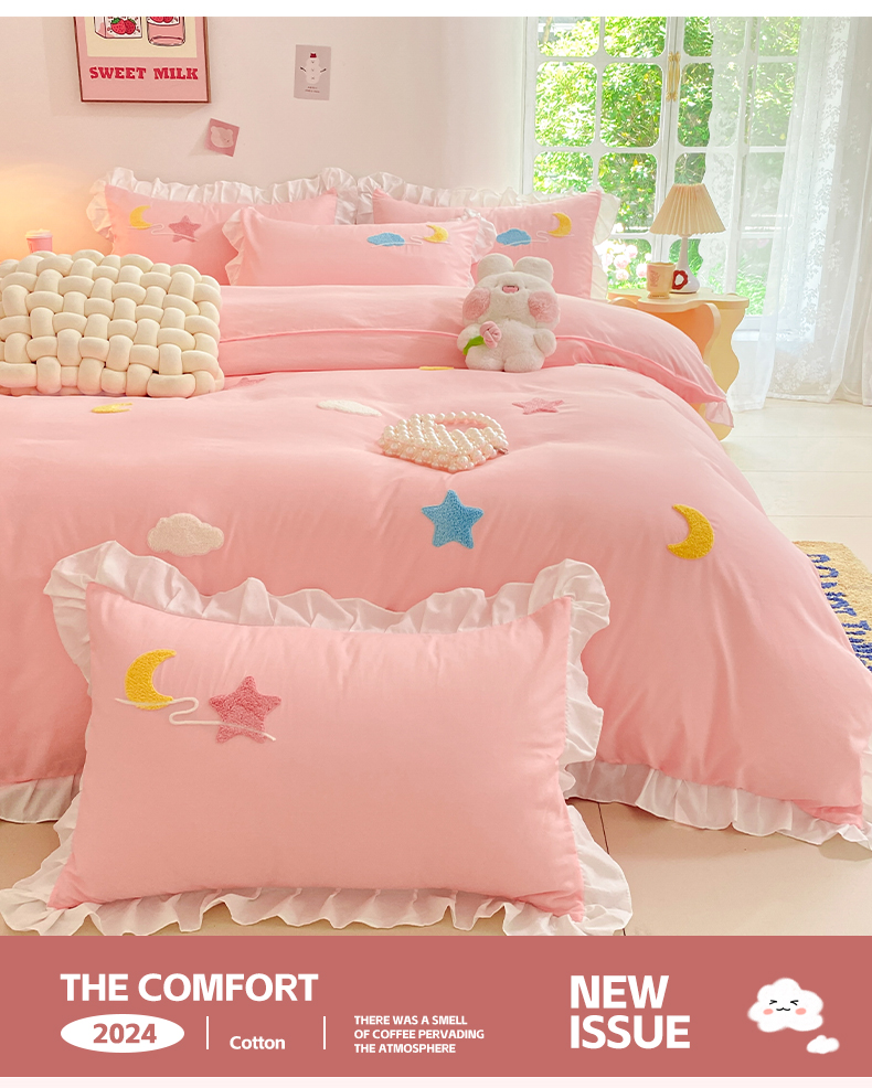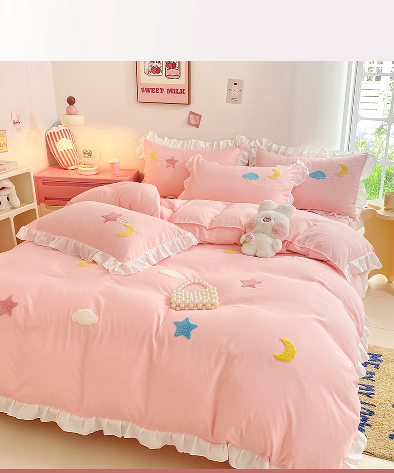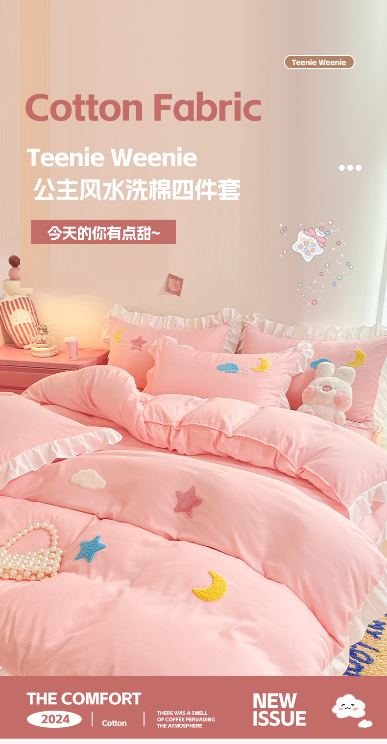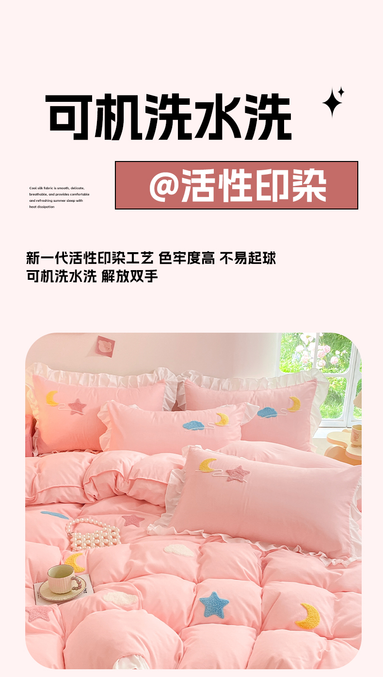 当前位置: 91家纺网 > 商品网购 > 床品套件 > 四件套 > 水洗棉四件套 > 雨菲家纺 2025新款公主风水洗棉四件套-星月 星月粉