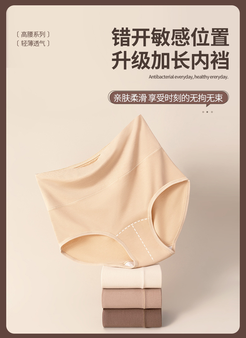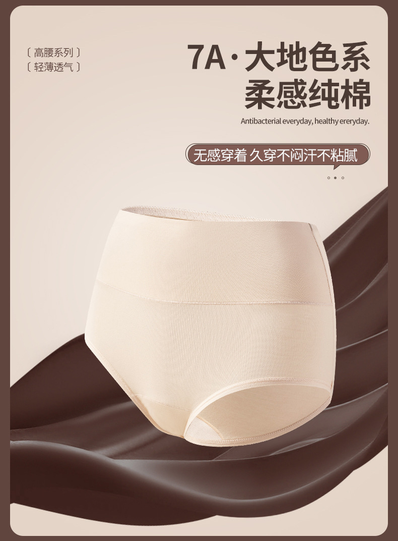商品名称:良品汇馆 2025新款日式无印高腰莫代尔内裤良品轻薄收腹纯色女士内裤无痕全棉纯棉裆超柔 肤色