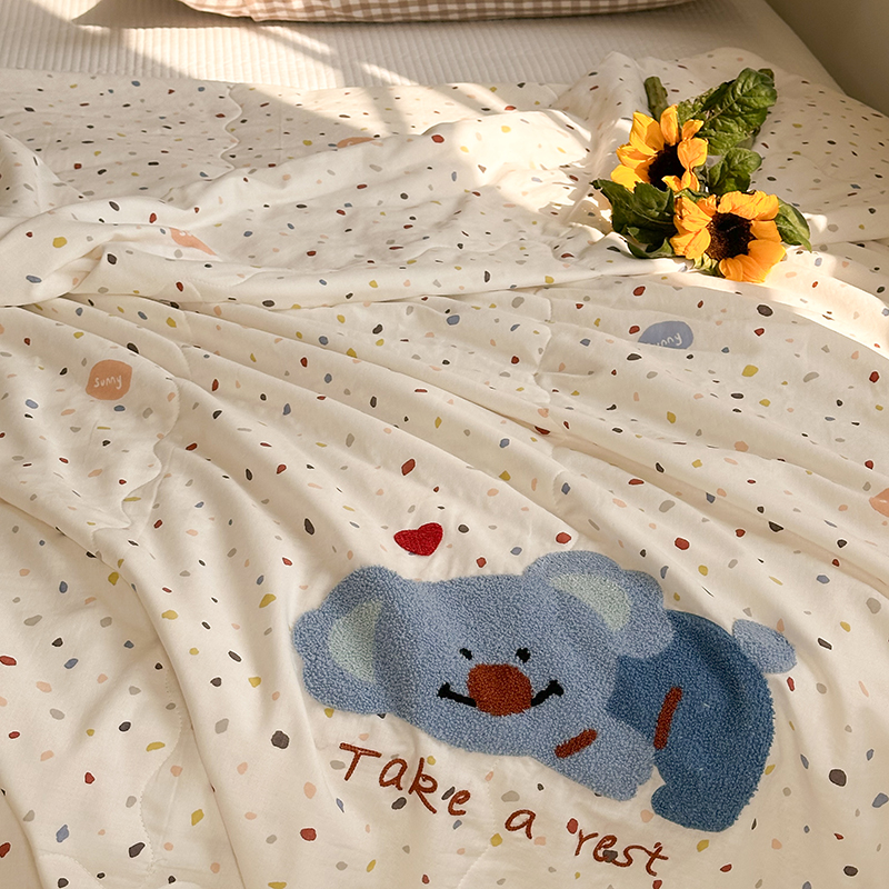 (总)洋铭区 2023新款全棉皱皱双层纱夏被,粉色郁金香,甜萝卜,旺旺熊,微笑,香甜草莓,小花仙,小鸭鸭