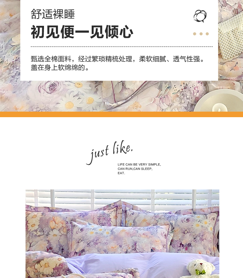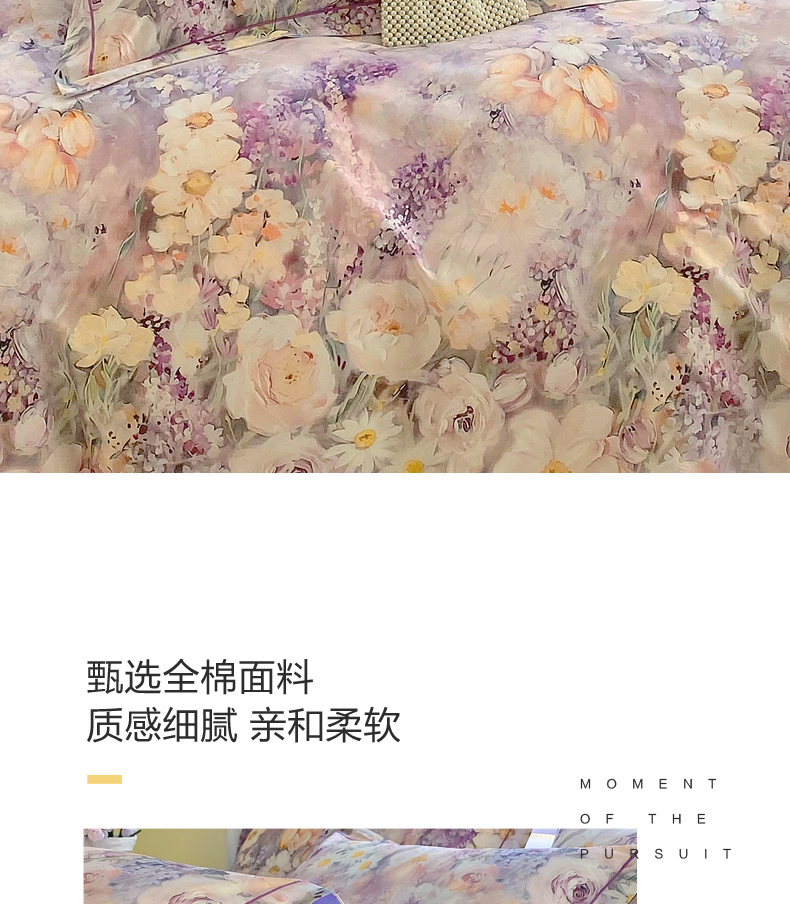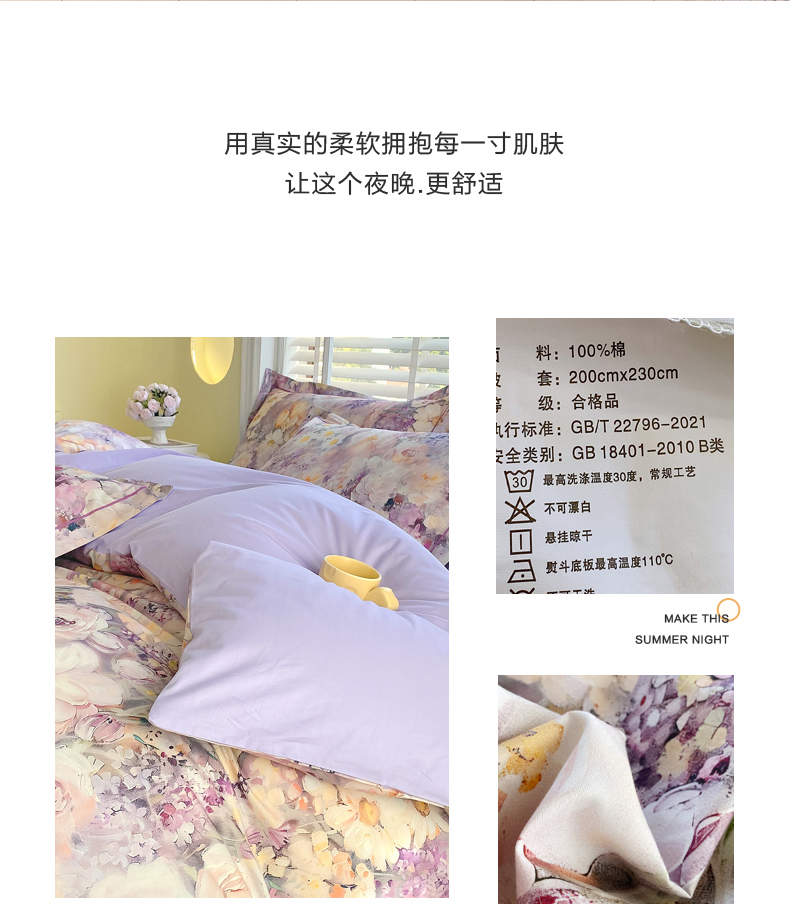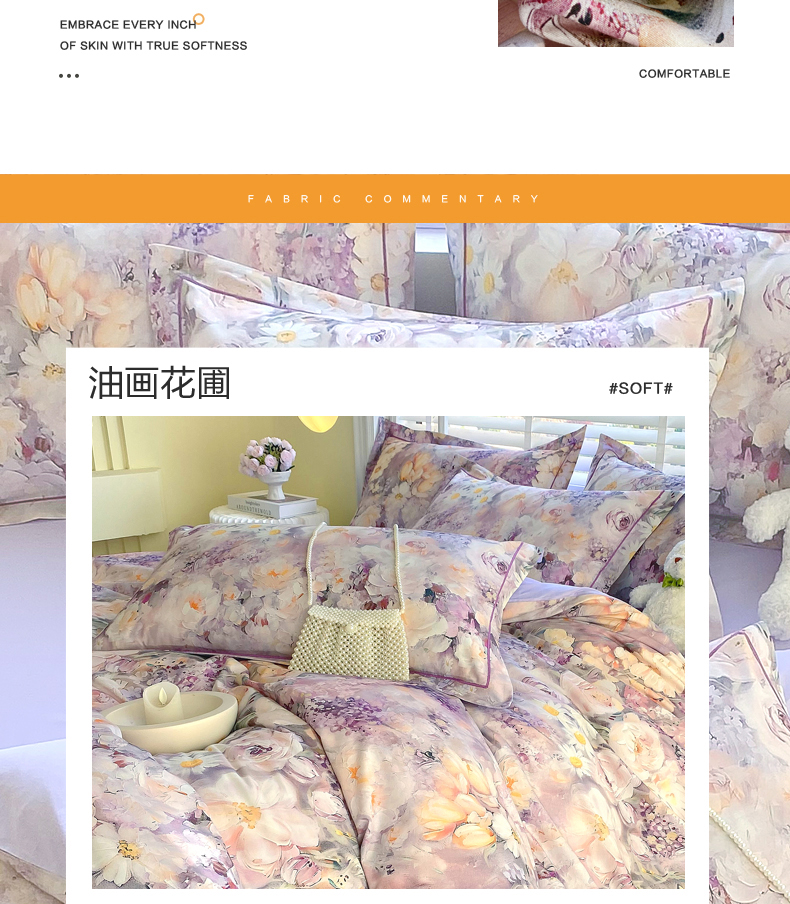 当前位置: 91家纺网 > 商品网购 > 床品套件 > 四件套 > 全棉普通四件套 > 星期三家纺 2025年5月春夏新款铂金全棉13372四件套(加老板微信有会员价) 油画花圃