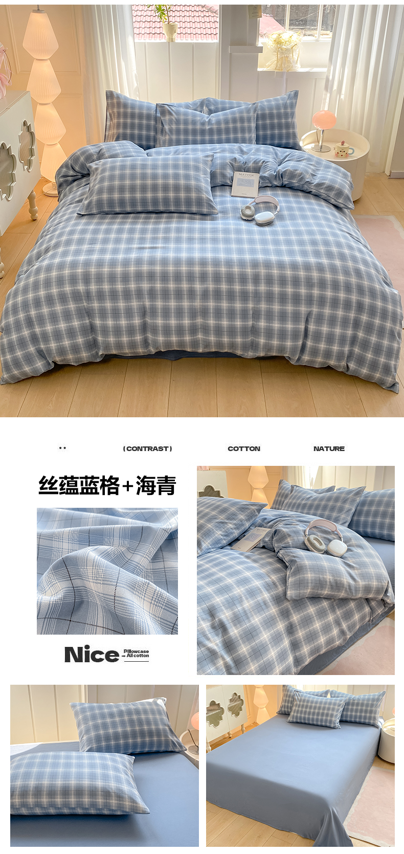 当前位置: 91家纺网 > 商品网购 > 床品套件 > 四件套 > 水洗棉四件套 > 慕木家纺 2025新品A类条纹简约无印风水洗棉床单款四件套条纹格系列(抽空压缩可跨境提供买家秀) 丝蕴蓝格+海青