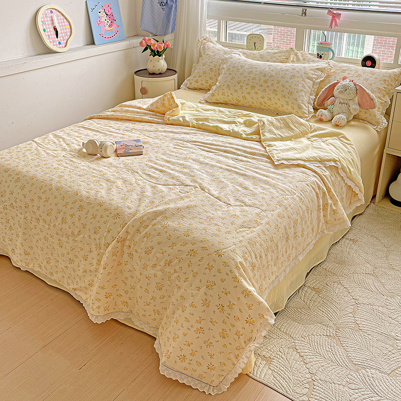 商品名称:一比一家纺 2026新款云感皱皱纱全棉花边款夏被四件套【控价109元】舒芙蕾