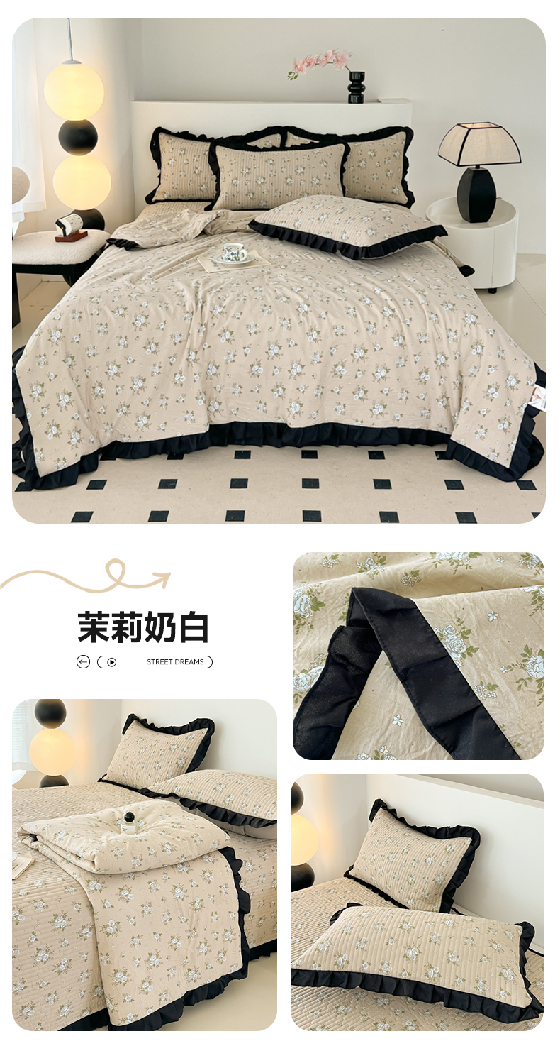 商品名称:同田家纺 2025新款A类水洗棉床盖夏被四件套 茉莉奶白