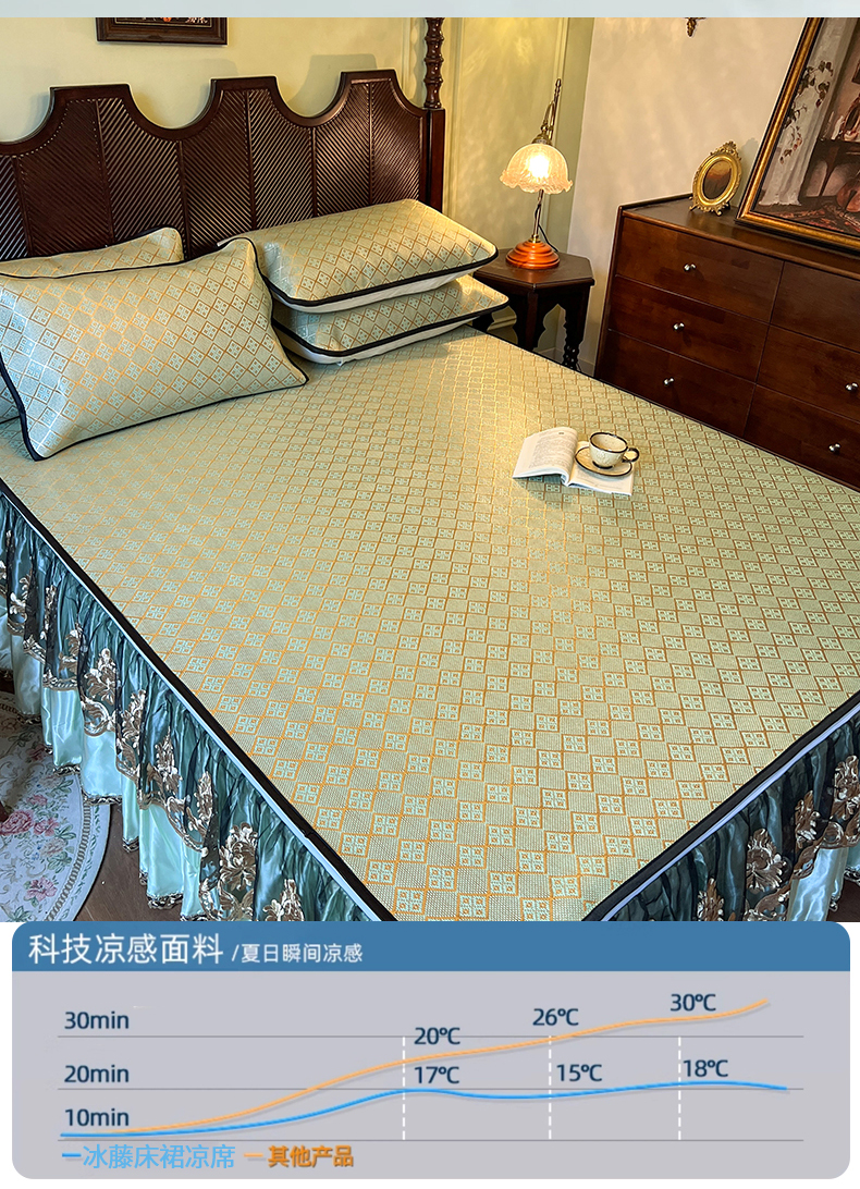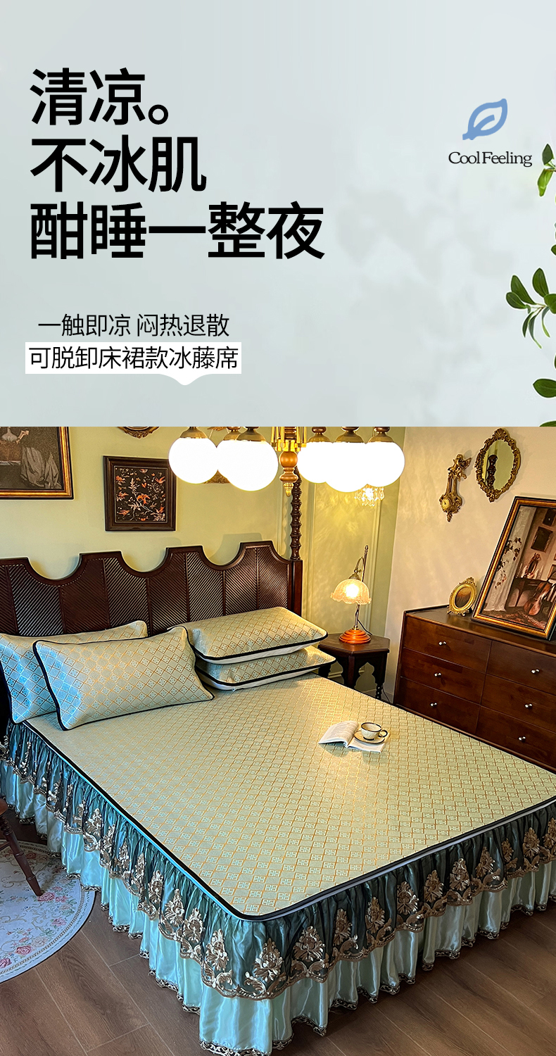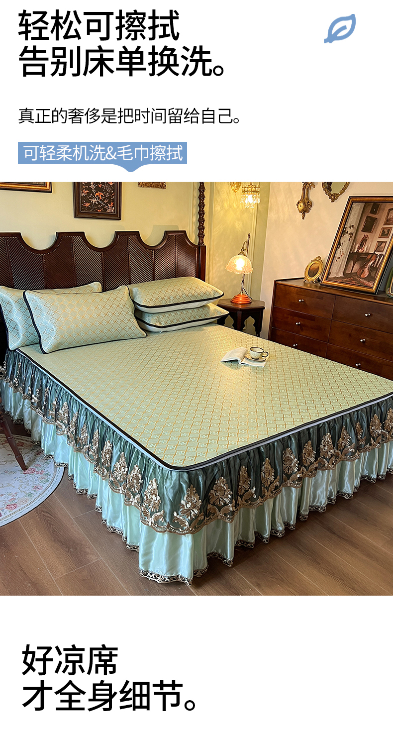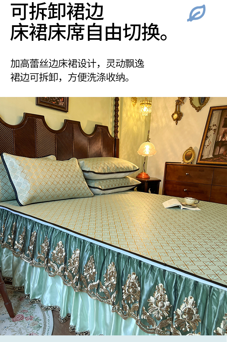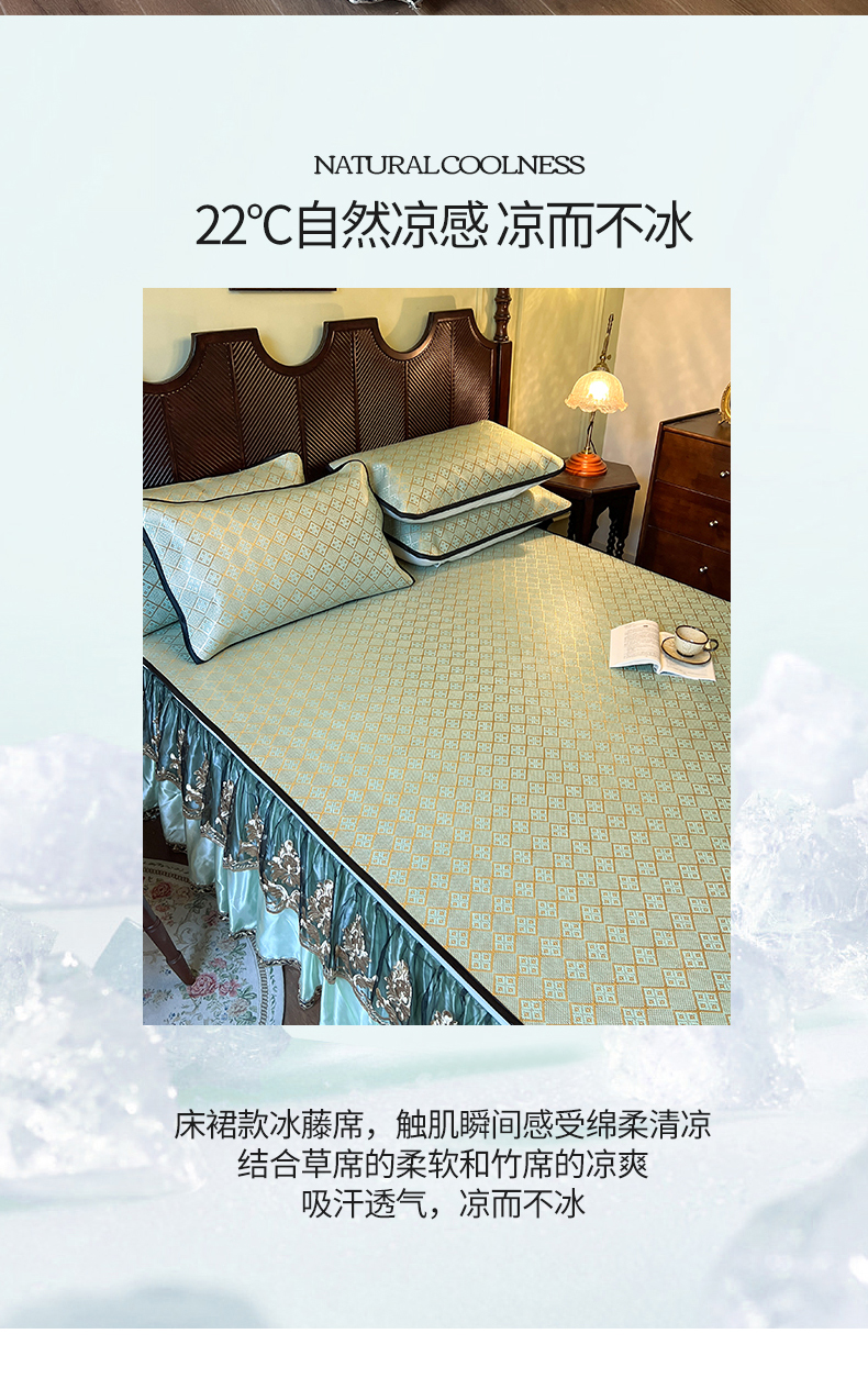 2.0*2.2床凉席三件套床裙200*220 枕套一对