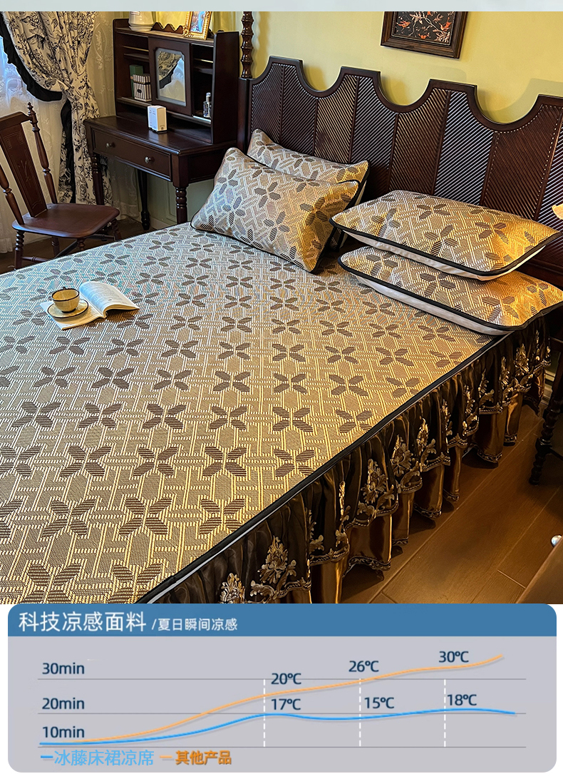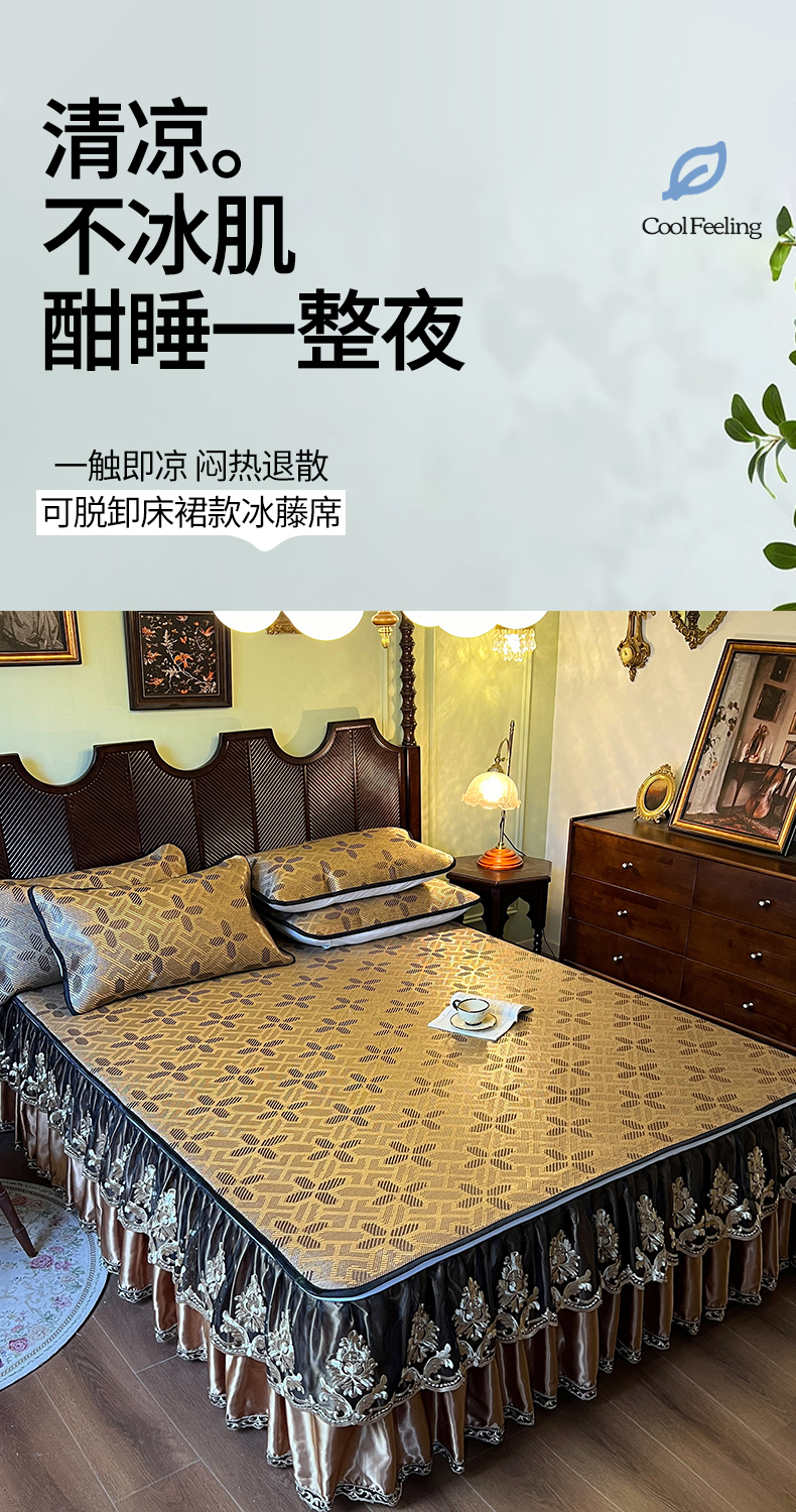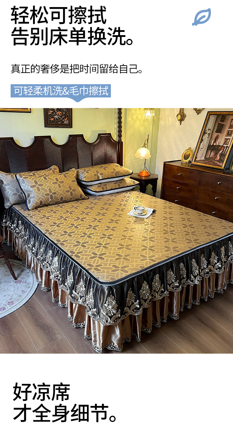 2.0*2.2床凉席三件套床裙200*220 枕套一对