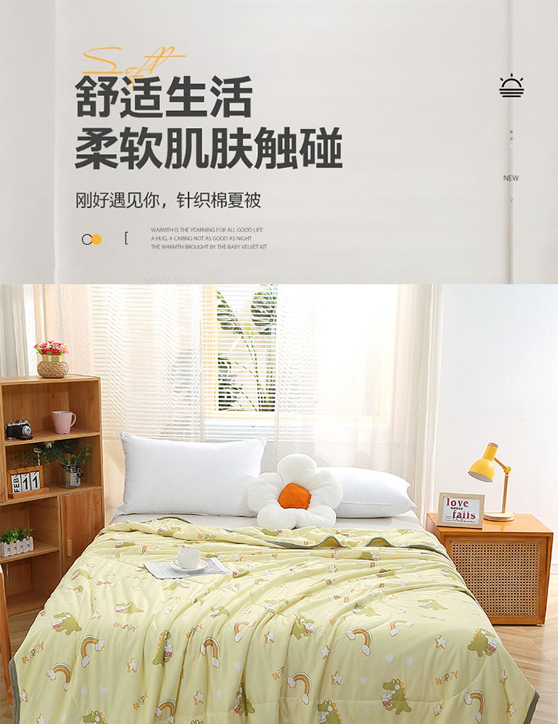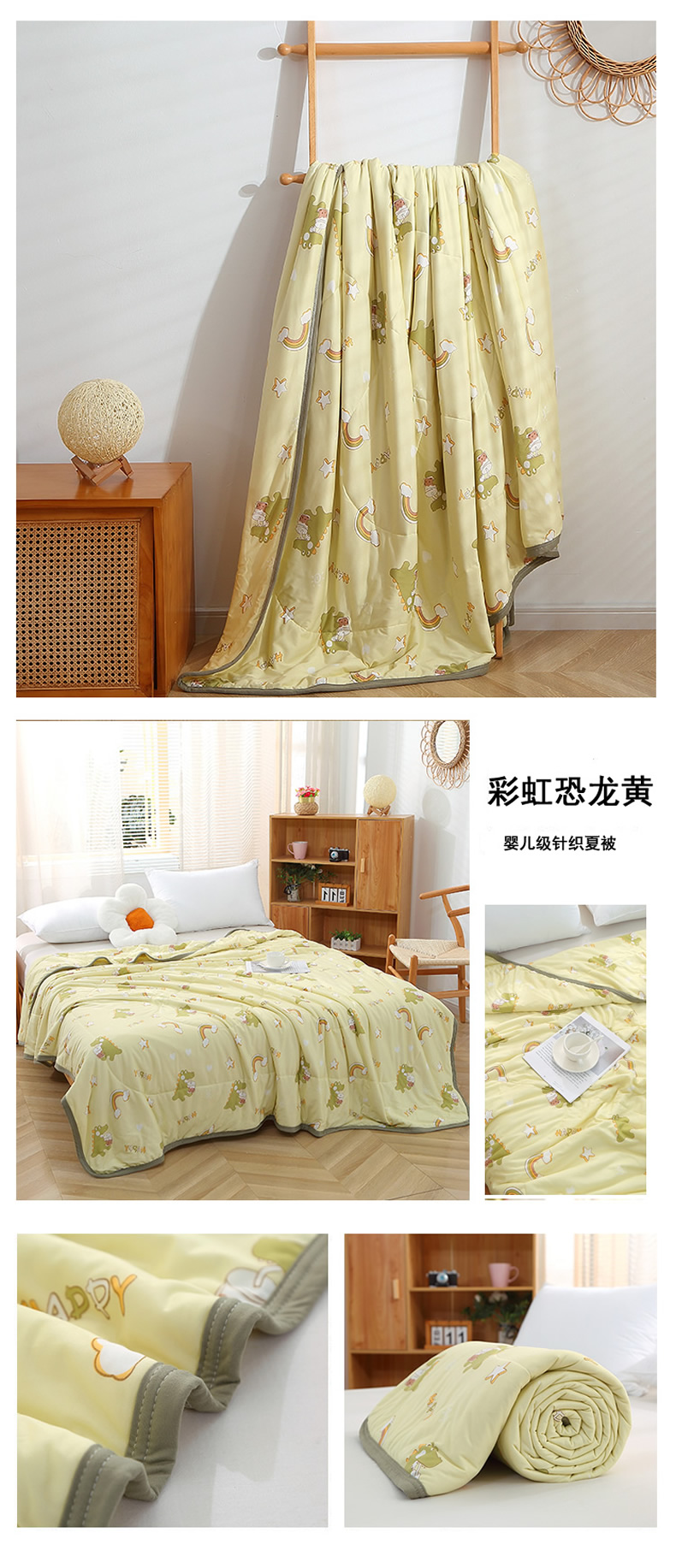 商品名称:贝兰仙奴 2025新款针织棉夏被 彩虹恐龙黄