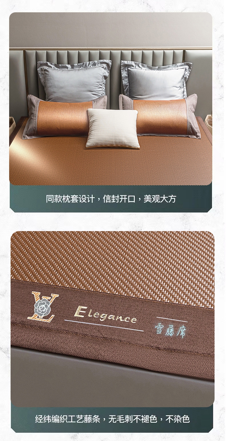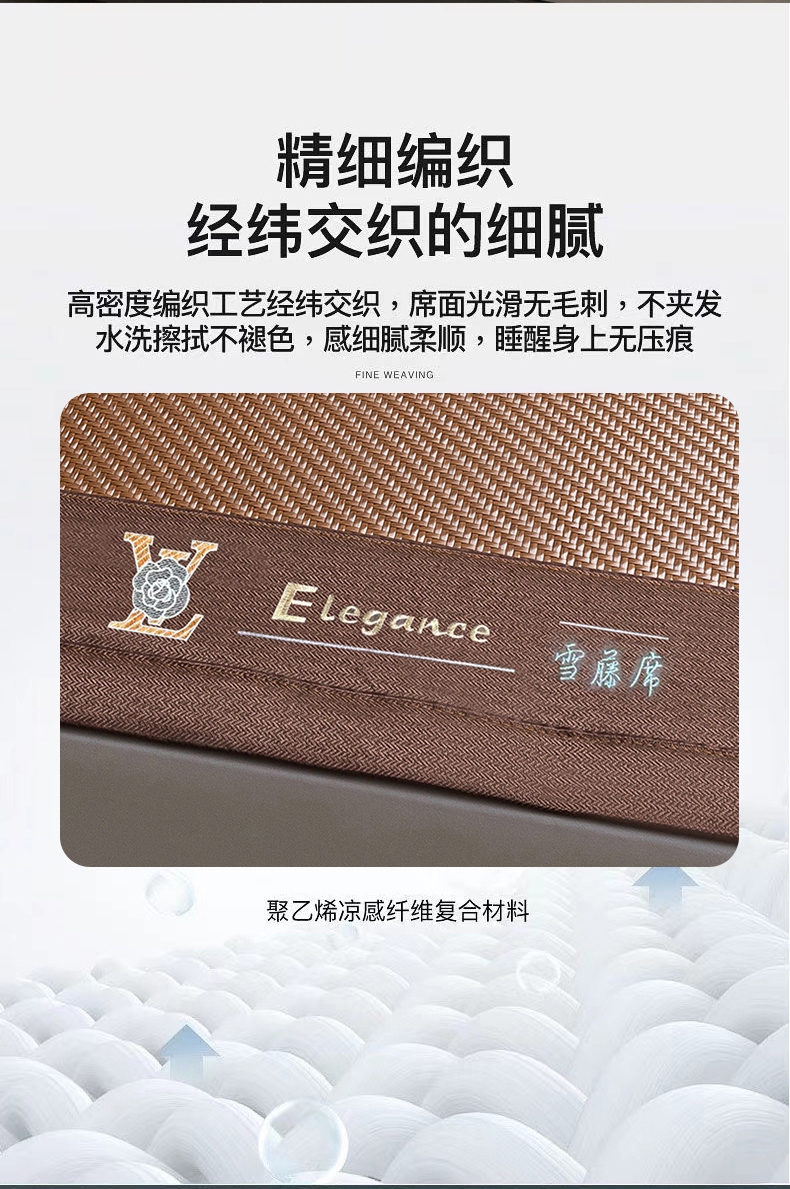 (总)苏迪网销供货 2025新款高端PE藤席冰丝三明治凉席霸王藤席,PE雪藤席-灰,PE雪藤席-咖