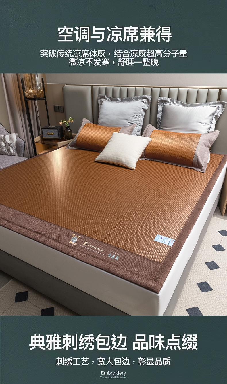 苏迪网销供货 2025新款高端PE藤席冰丝三明治凉席霸王藤席 PE雪藤席-咖