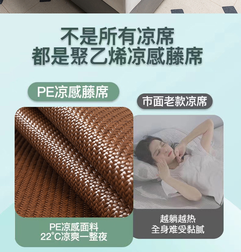 商品名称:苏迪网销供货 2025新款高端PE藤席冰丝三明治凉席霸王藤席 PE雪藤席-咖