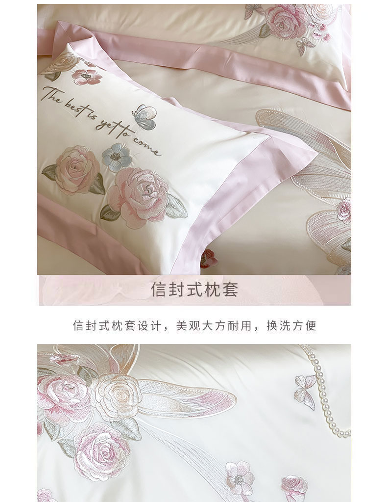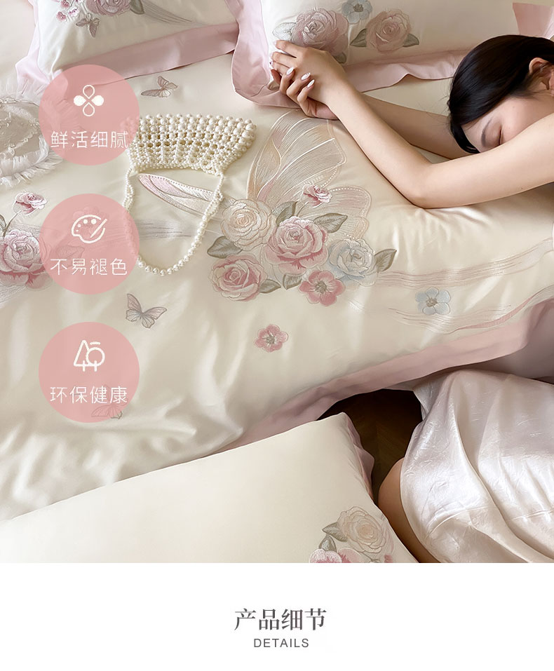 (总)佳汐蓝家纺 2025新款春夏新品TENCEL兰精天丝四件套绣花系列,花颜如梦·珍珠粉,花颜如梦·珍珠绿