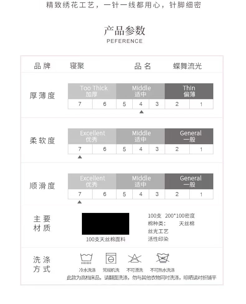 商品名称:(总)佳汐蓝家纺 2025春夏新款天丝棉蝶舞繁花绣花天丝四件套
