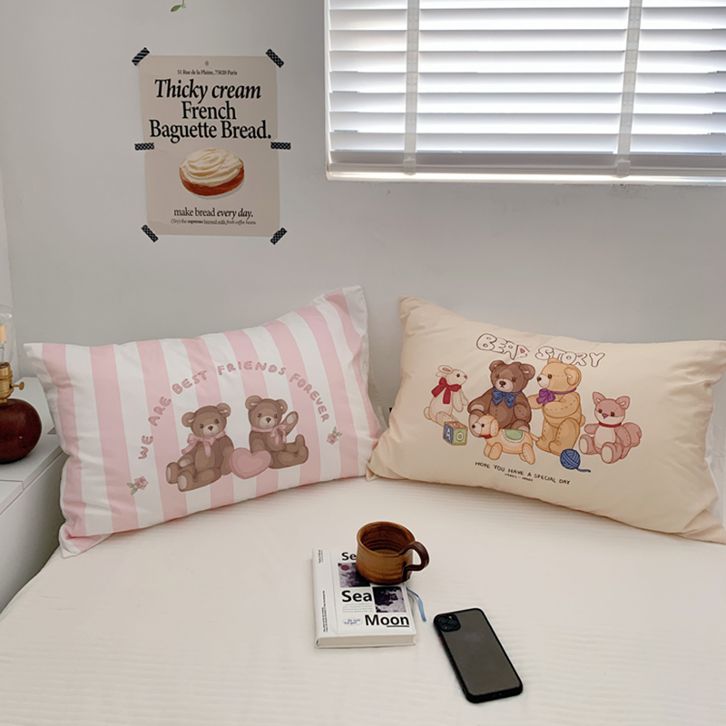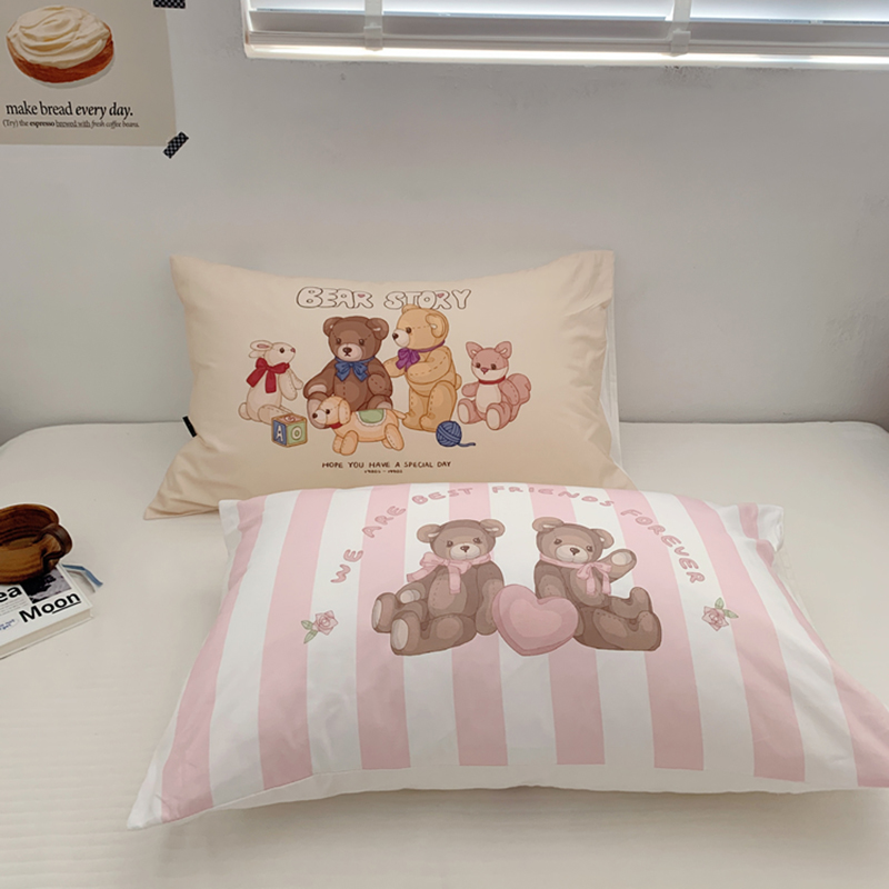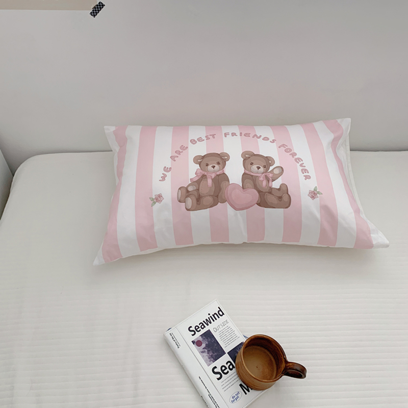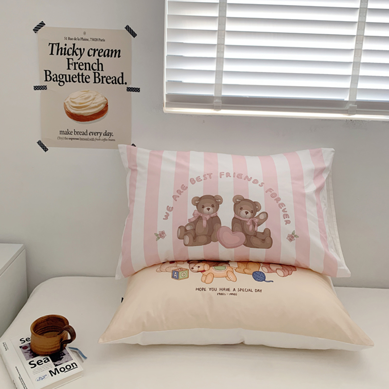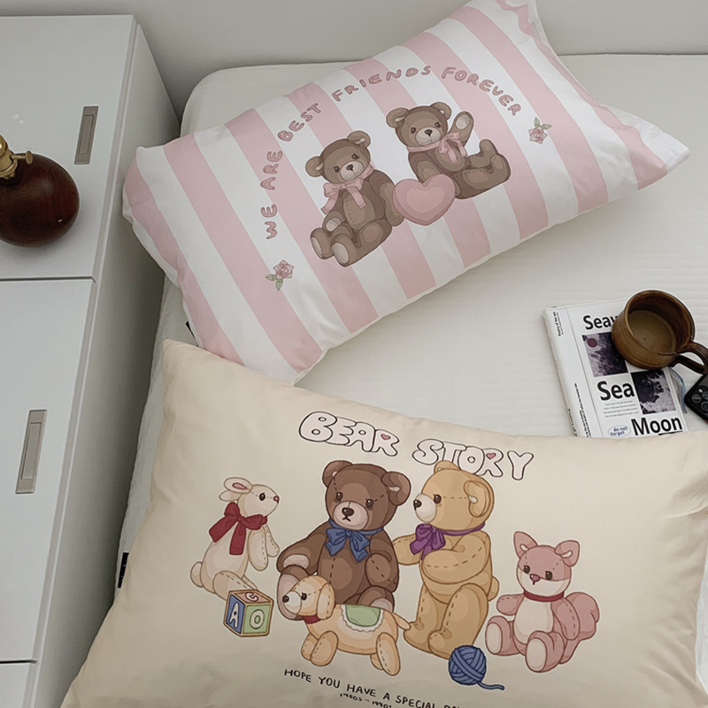 商品名称:柚可家居 2024新款小熊定版数码印花全棉单枕套 粉色小熊定版枕套