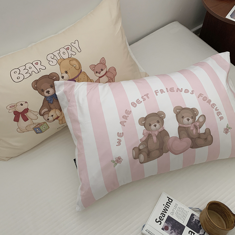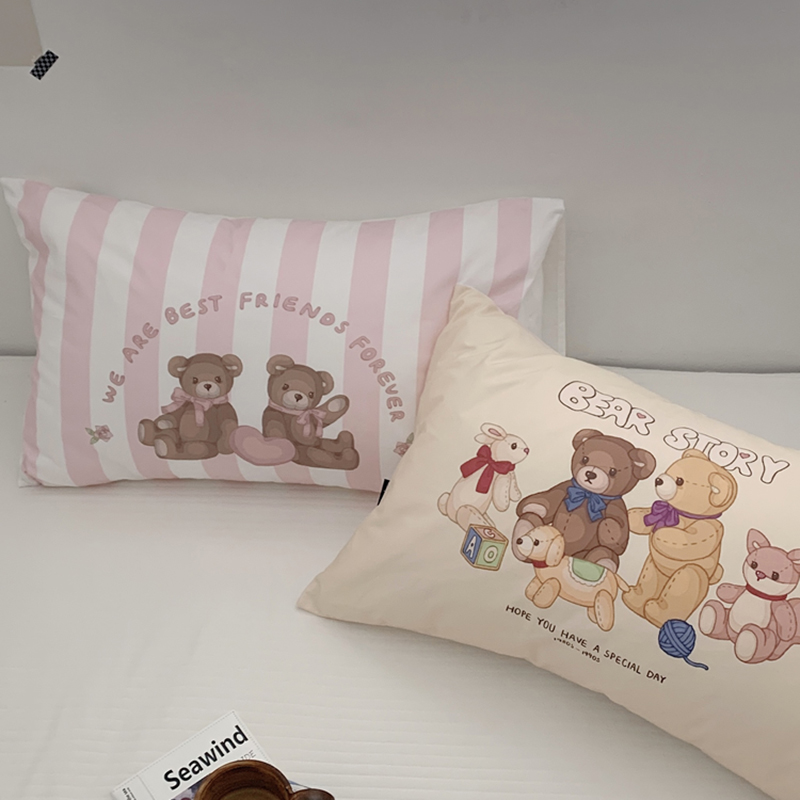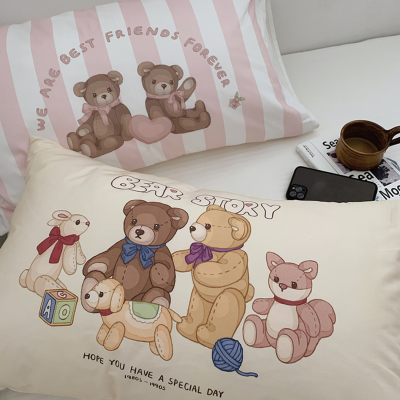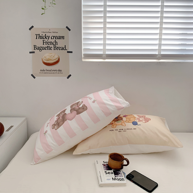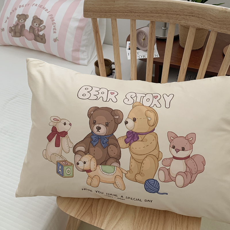 商品名称:柚可家居 2024新款小熊定版数码印花全棉单枕套 粉色小熊定版枕套