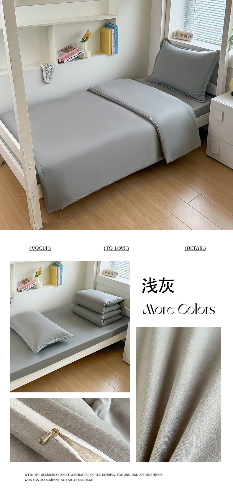 茗婷家纺 2025供外贸跨境纯色床单笠学生三件套上下铺三件套军训宿舍医院养老院 浅灰