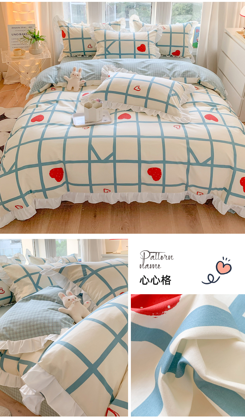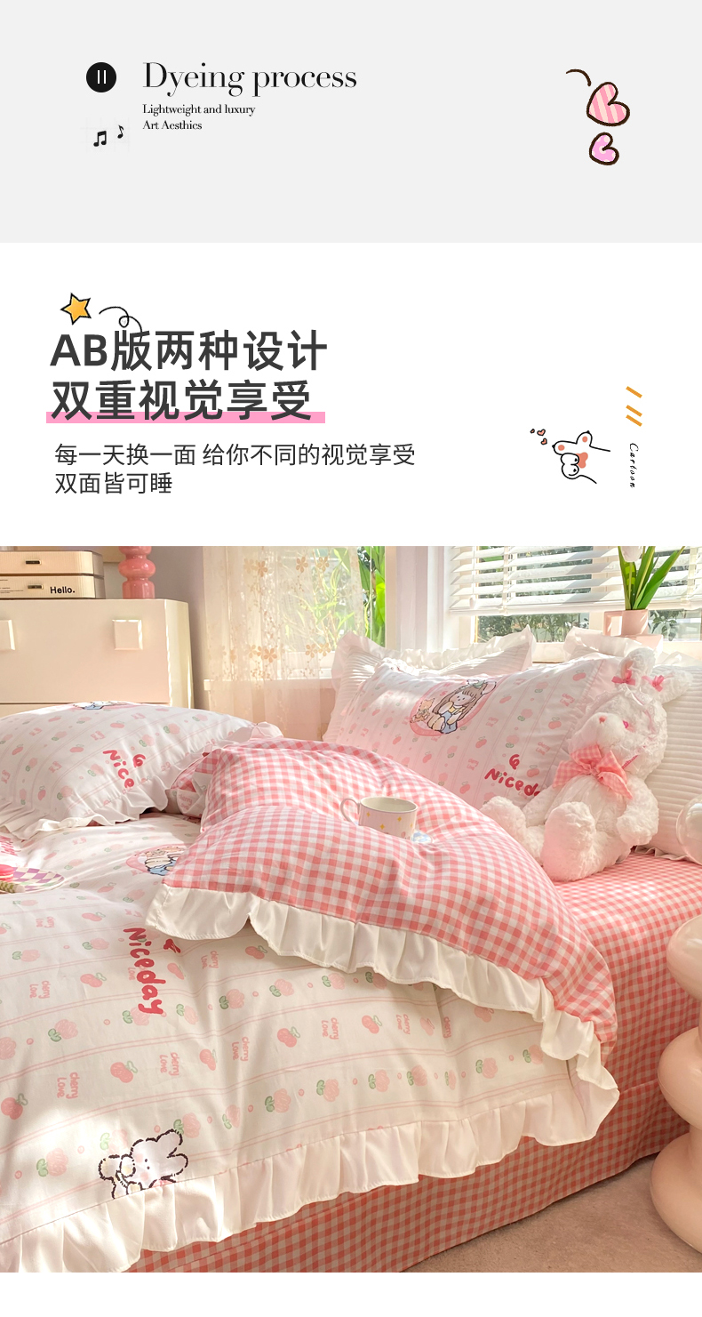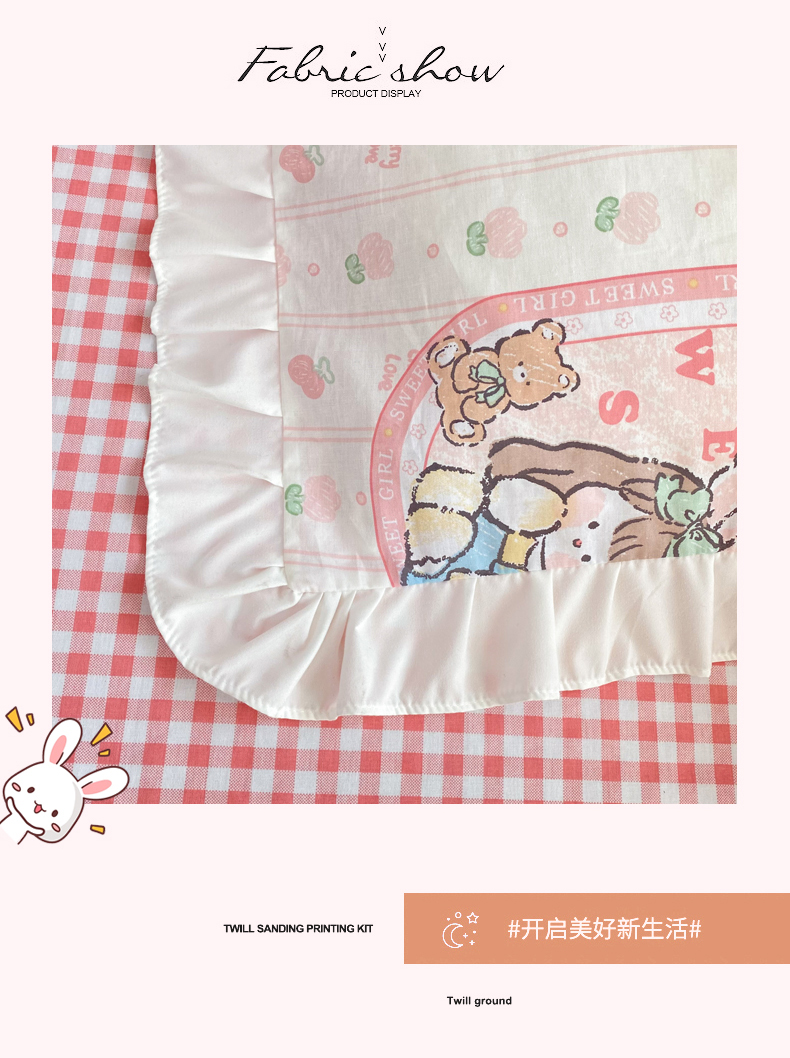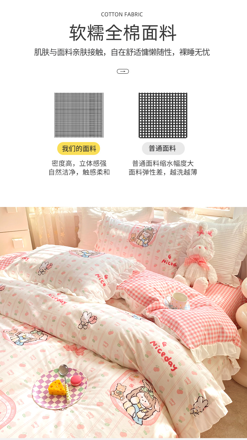 商品名称:玉元坊 2025春夏新款公主风全棉纯棉花边被套床单四件套 公主兔