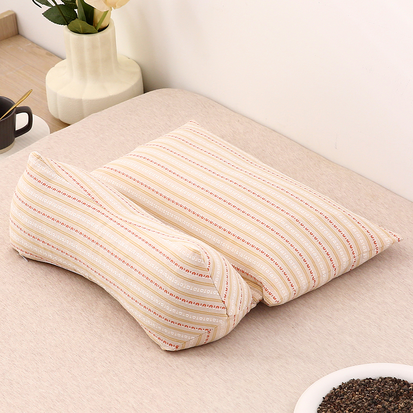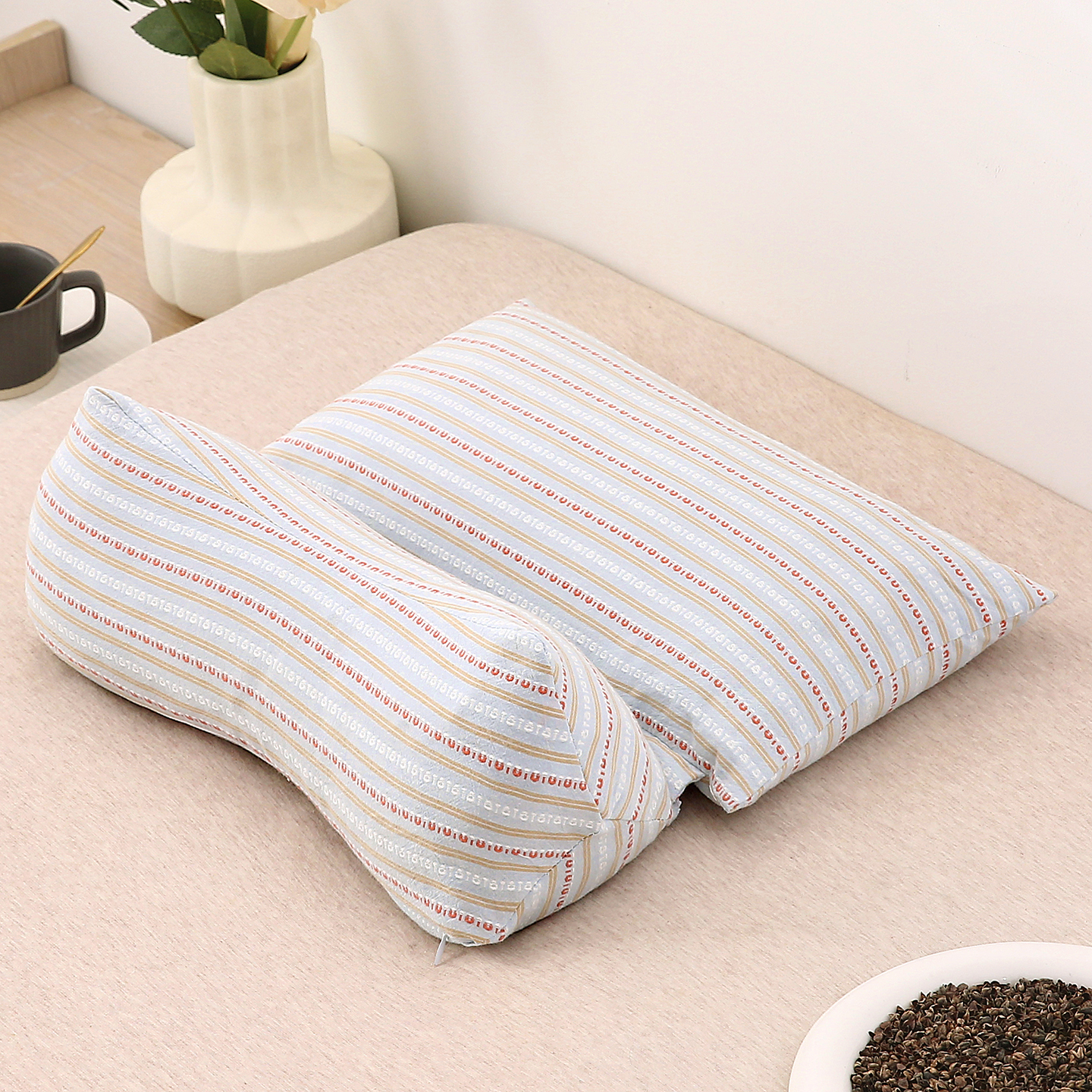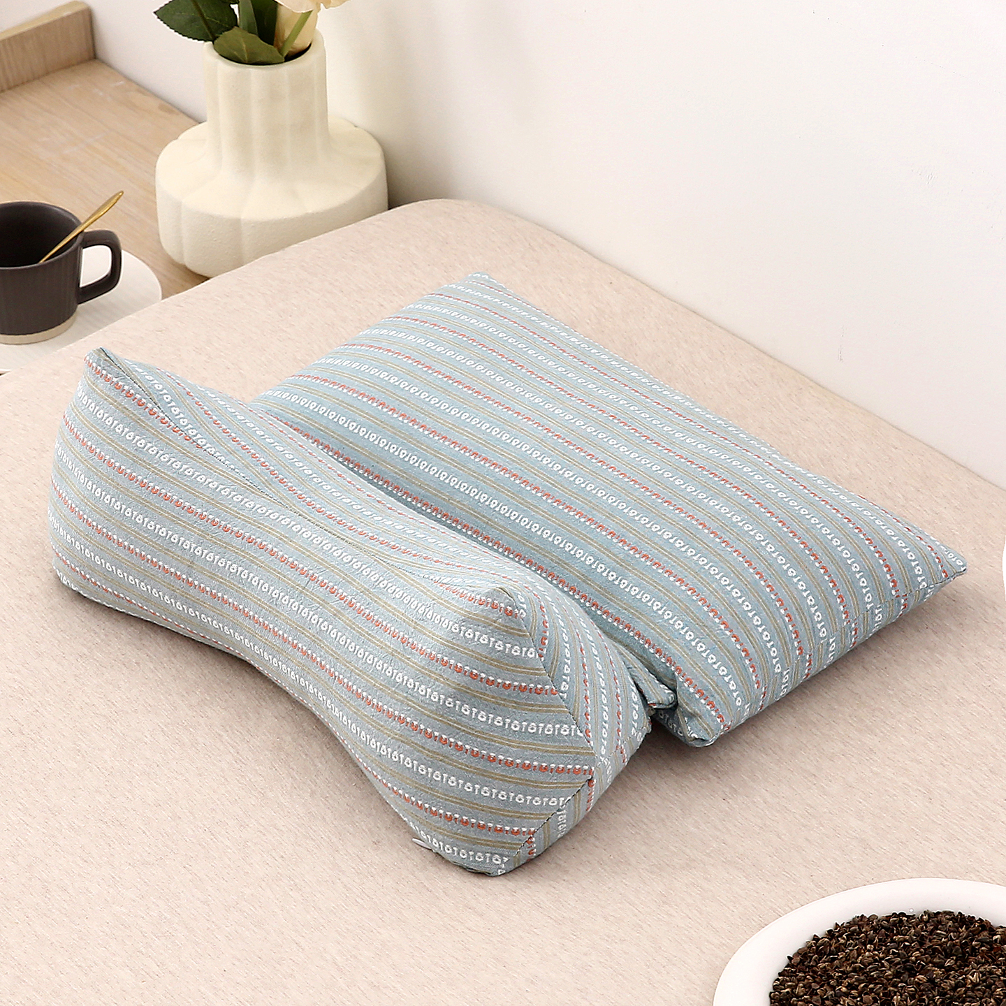 当前位置: 91家纺网 > 商品网购 > 枕头/枕芯/保健枕/颈椎枕 > 普通枕芯 > 珍贝家纺 2025新款全棉水洗棉条纹荞麦枕二合一组合枕牵引枕 枕头枕芯 二合一条纹荞麦-绿色/只 二合一荞麦枕