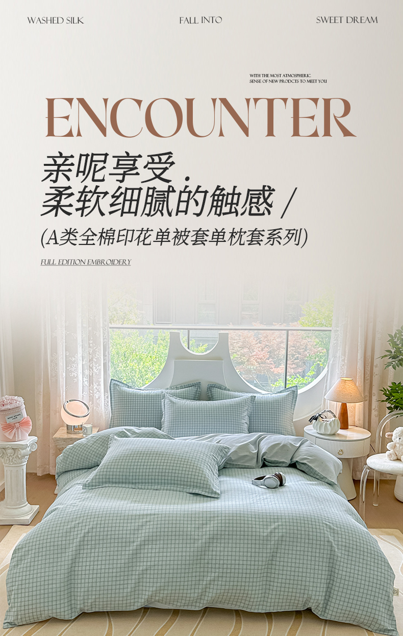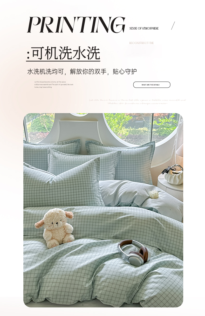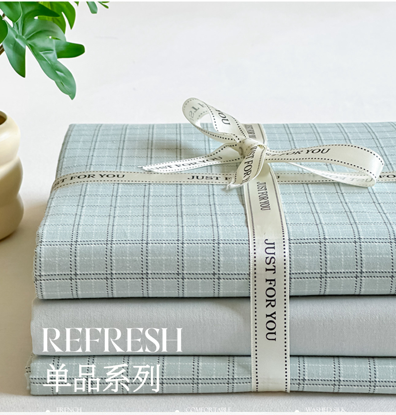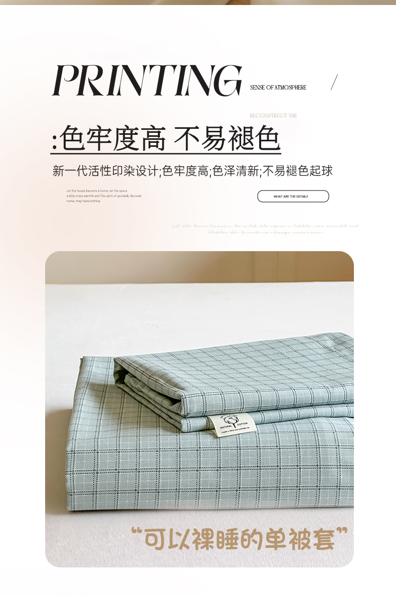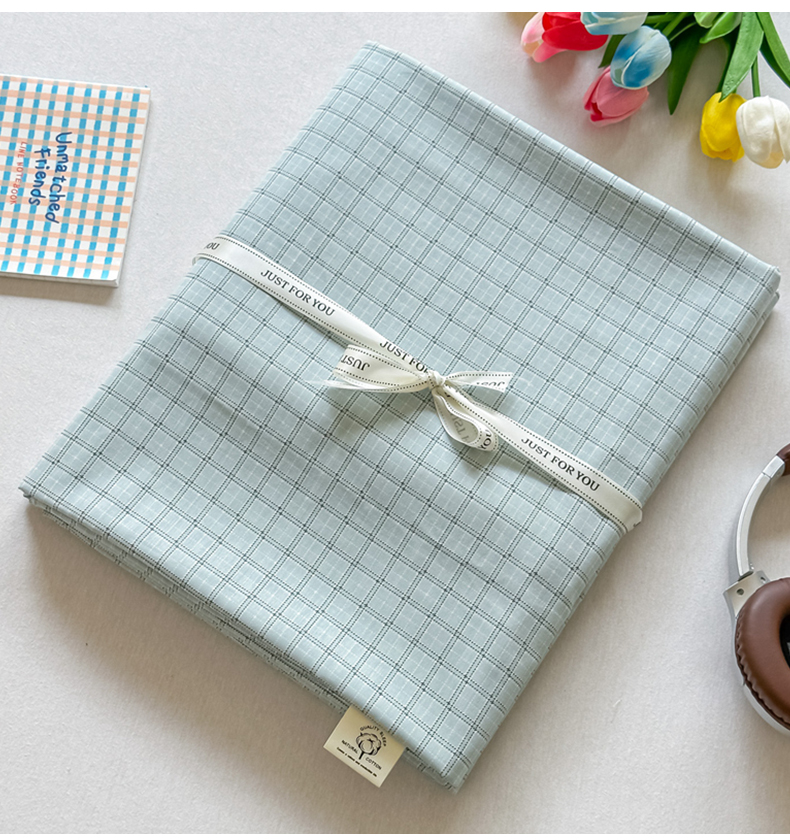 芙绣家纺 2025新款A类全棉小清新印花单被套单枕套学生单品系列 格子蓝