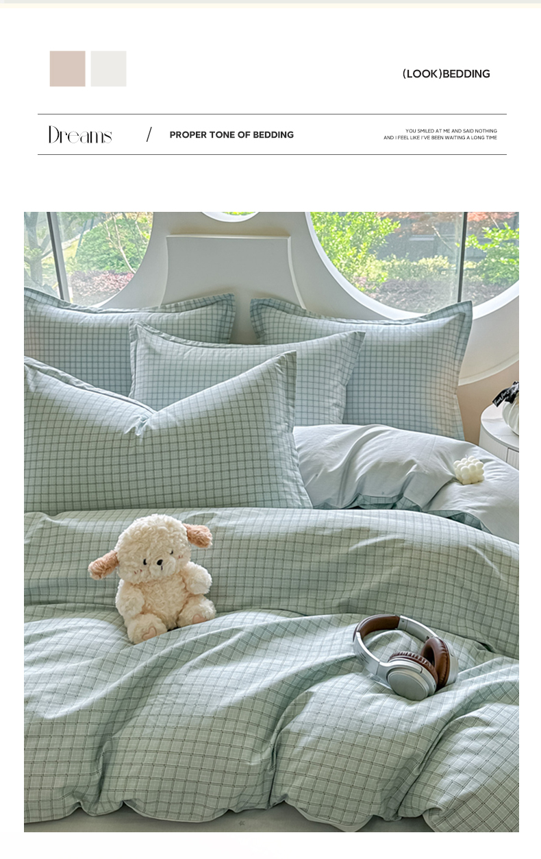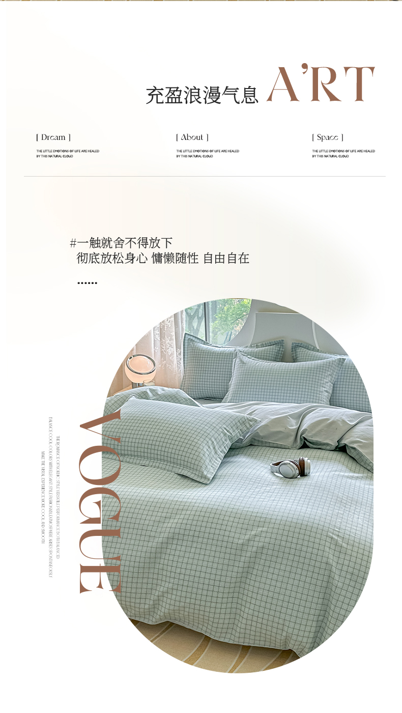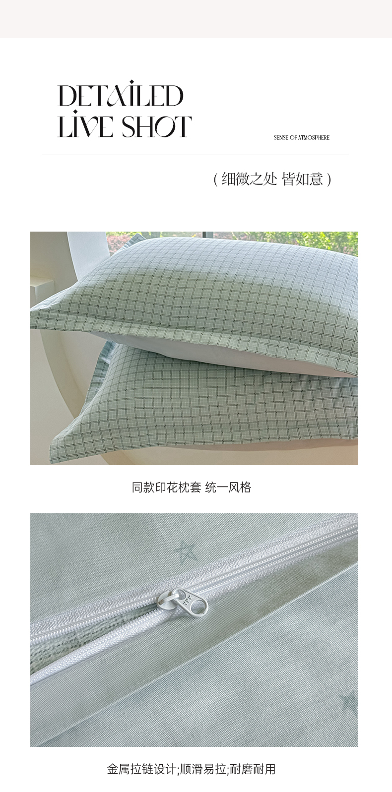 芙绣家纺 2025新款A类全棉小清新印花单被套单枕套学生单品系列 格子蓝