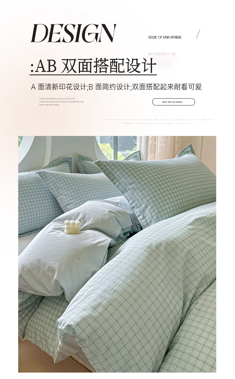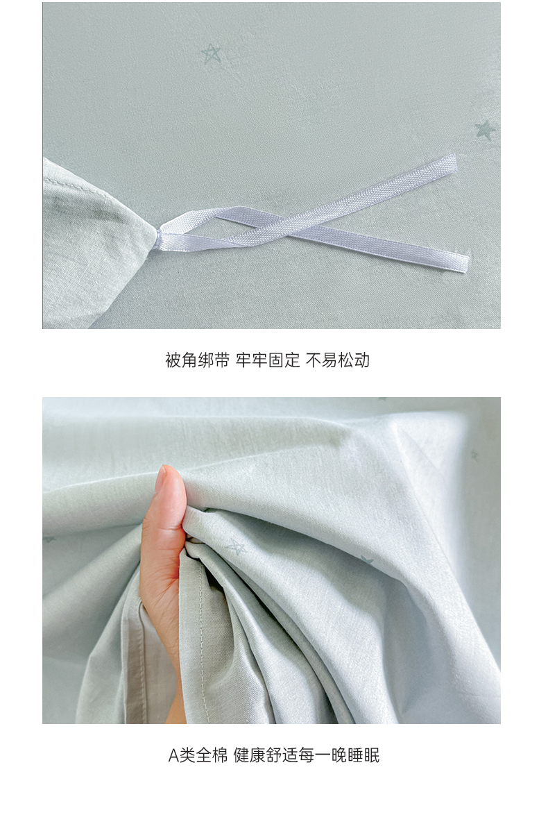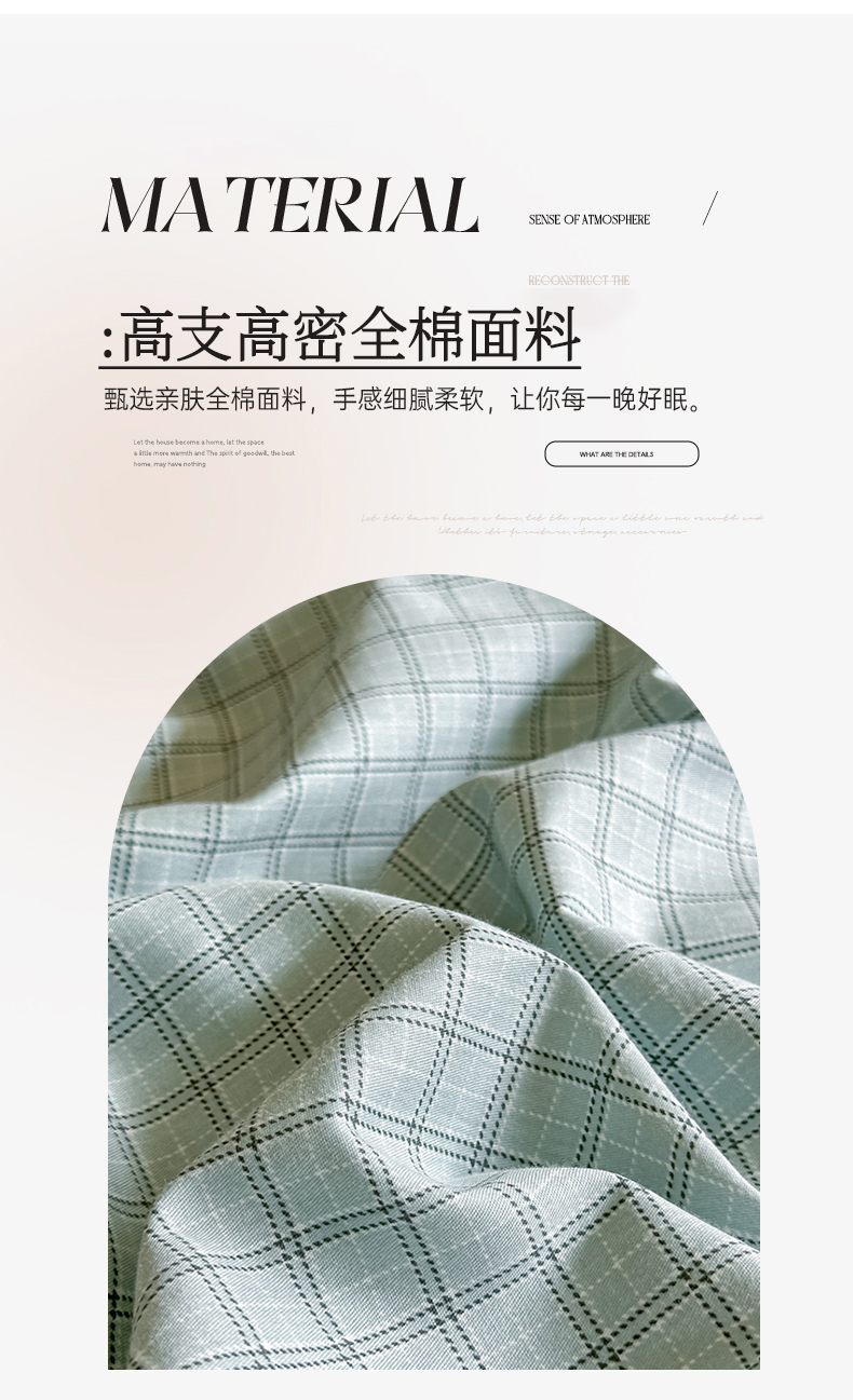 商品名称:芙绣家纺 2025新款A类全棉小清新印花单被套单枕套学生单品系列 格子蓝