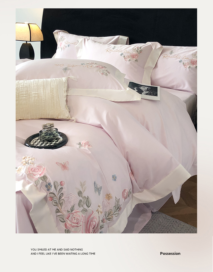 (总)春夏新款50*50S贡缎长绒棉刺绣四件套高档礼盒纯棉床单床笠,白拼粉-花漾-贡缎长绒棉,香芋紫-花漾-贡缎长绒棉,蒂芙尼蓝-花漾-贡缎长绒棉,桃花粉-花漾-贡缎长绒棉