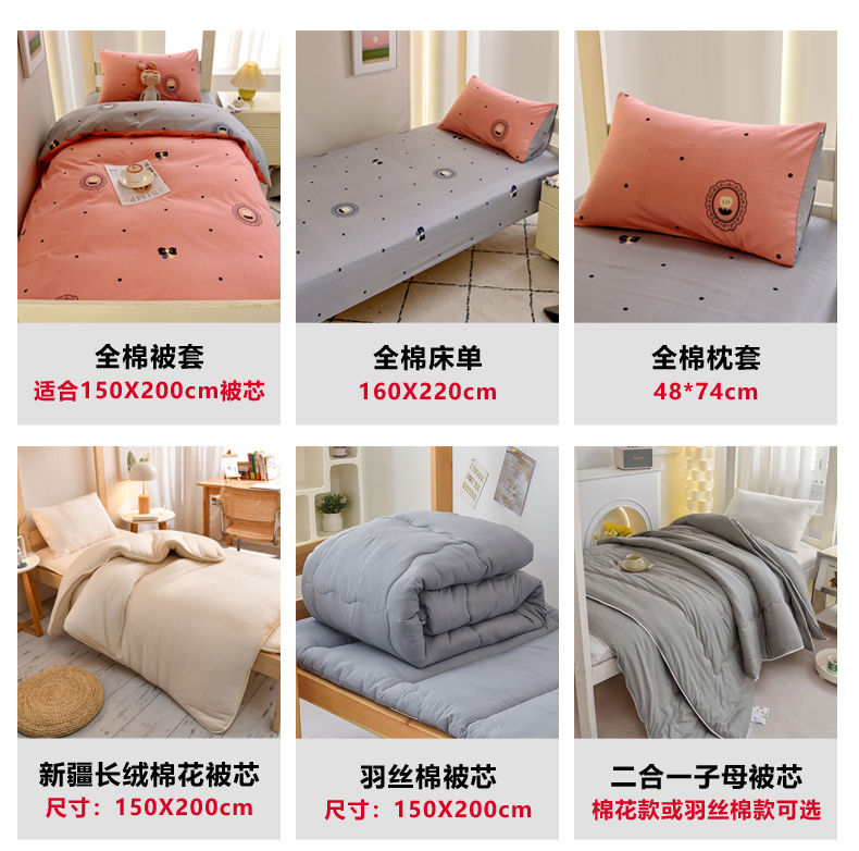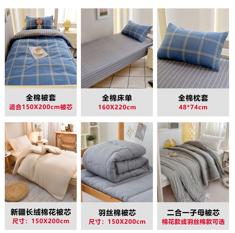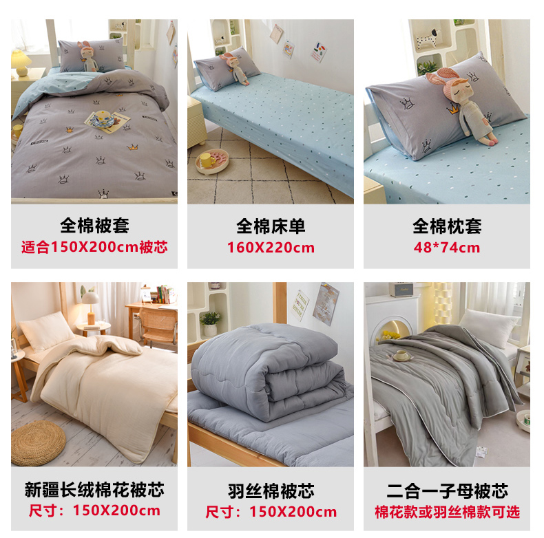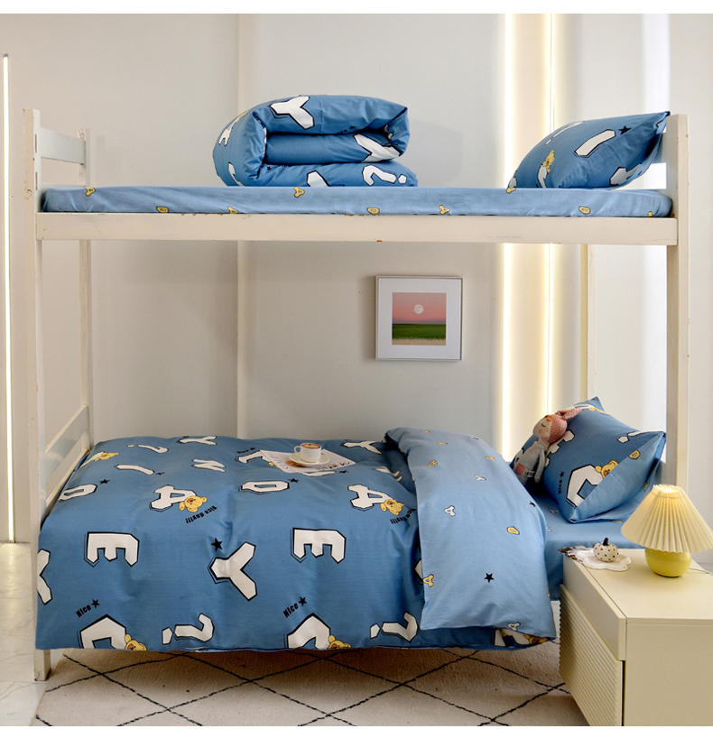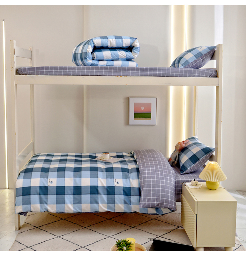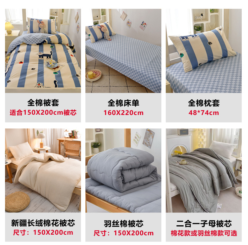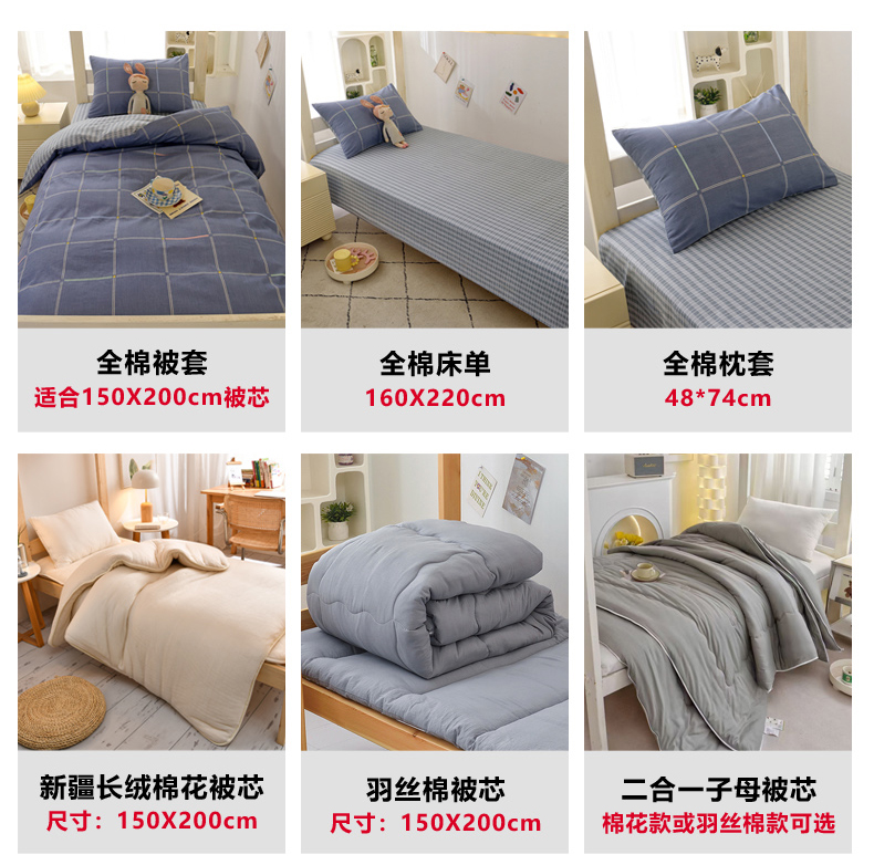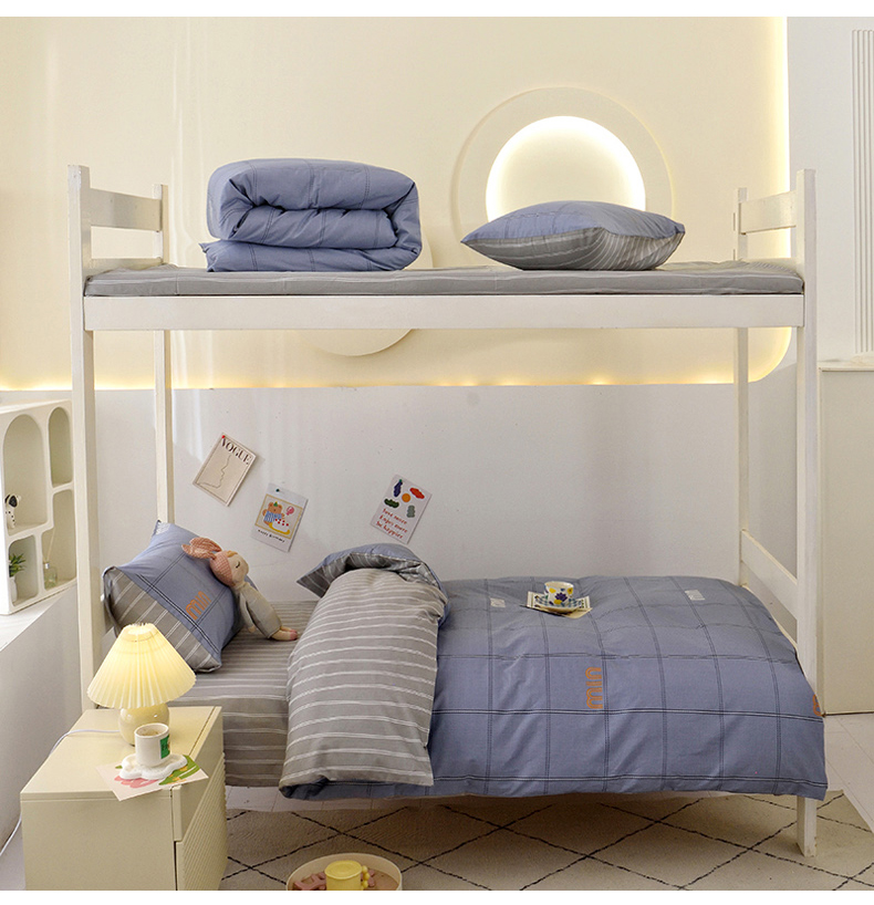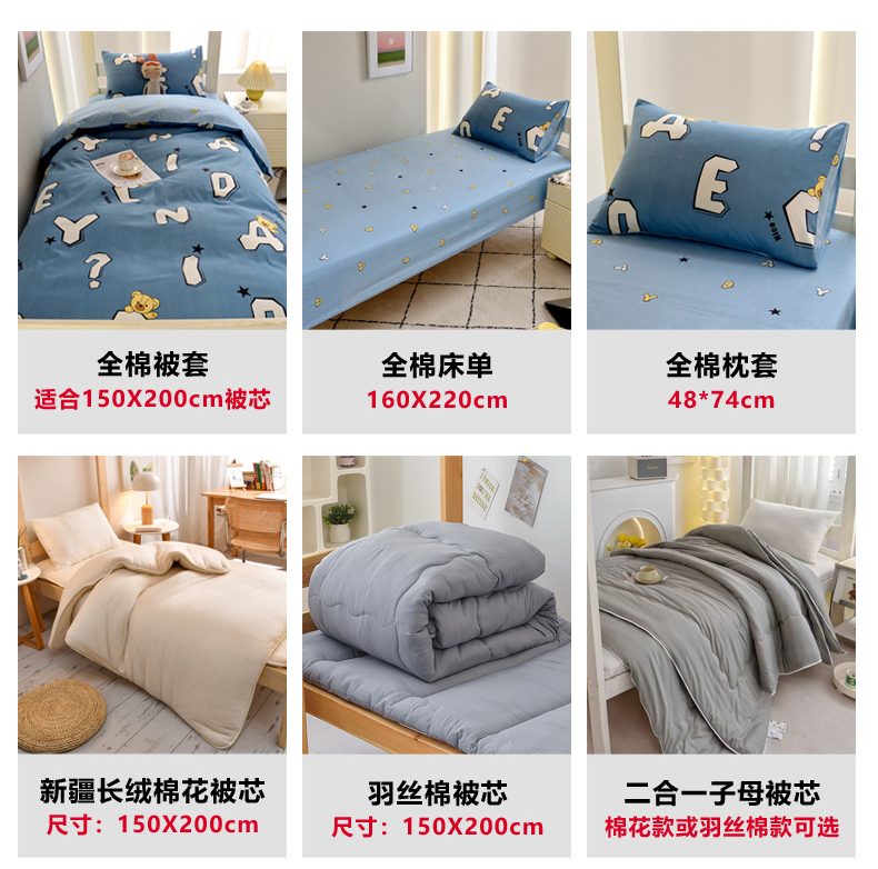 商品名称:(总)水妙家纺2025新款A类全棉学生宿舍五件套上下铺子母被六件套纯棉三件套-褥垫款(可订制)