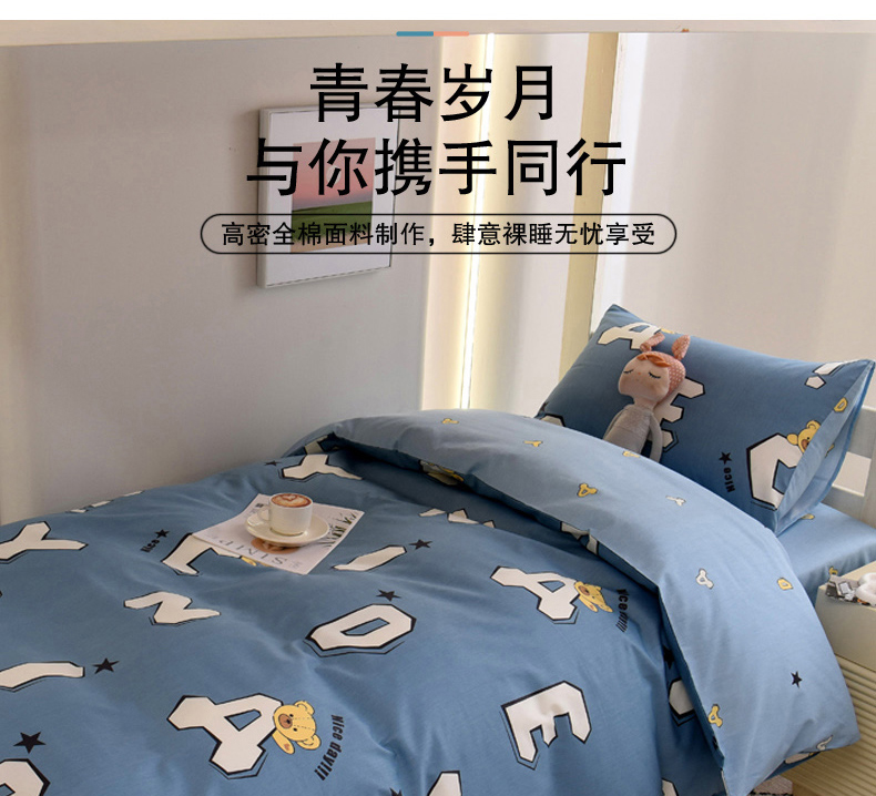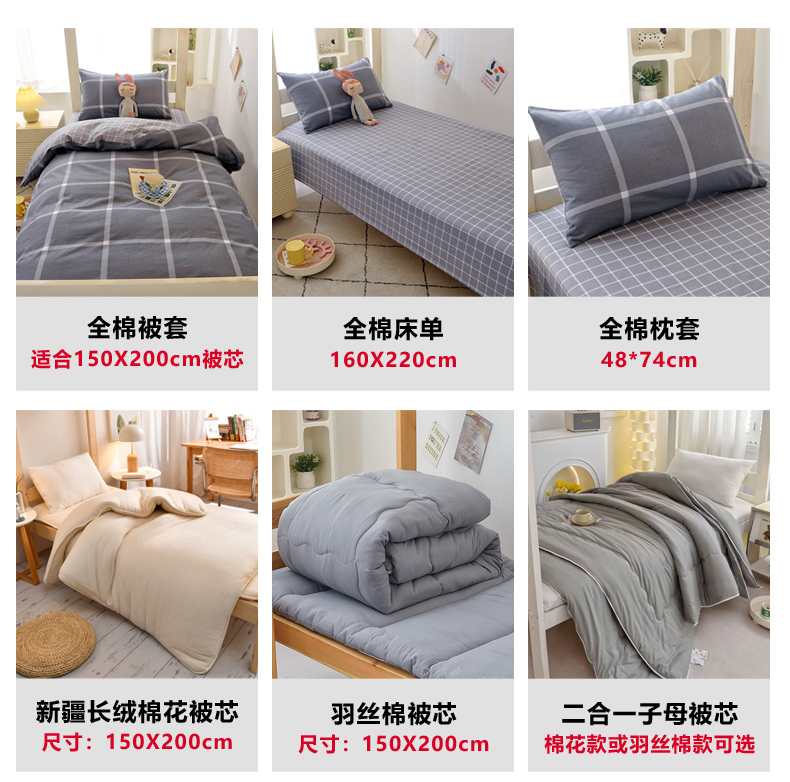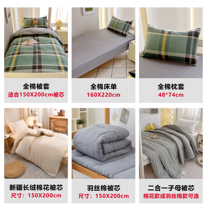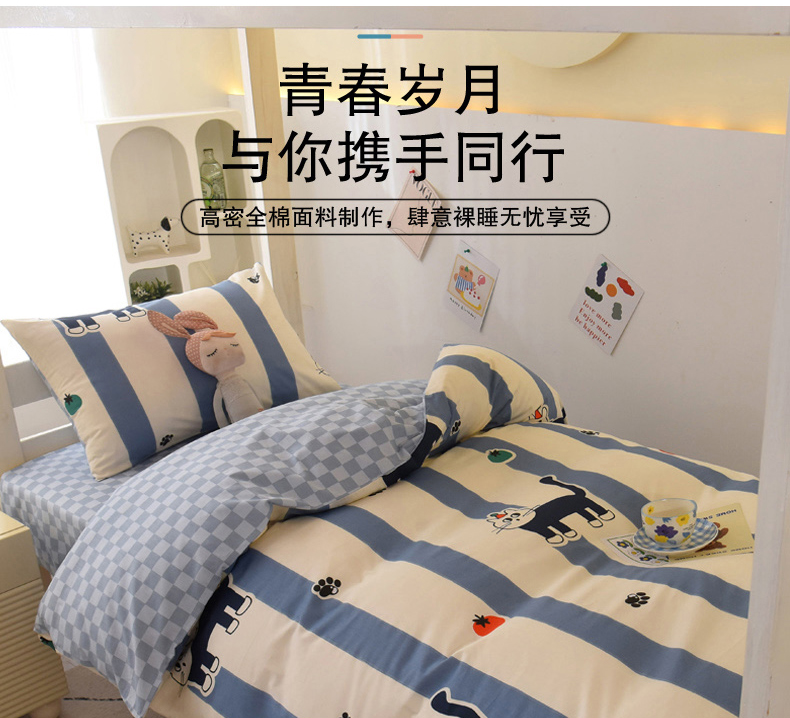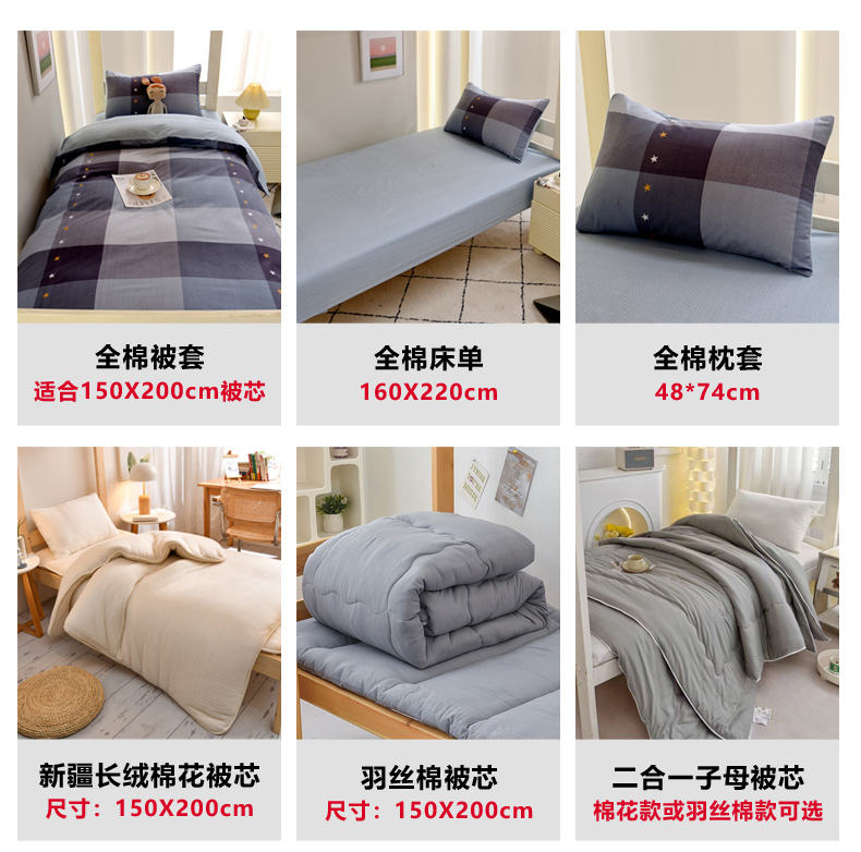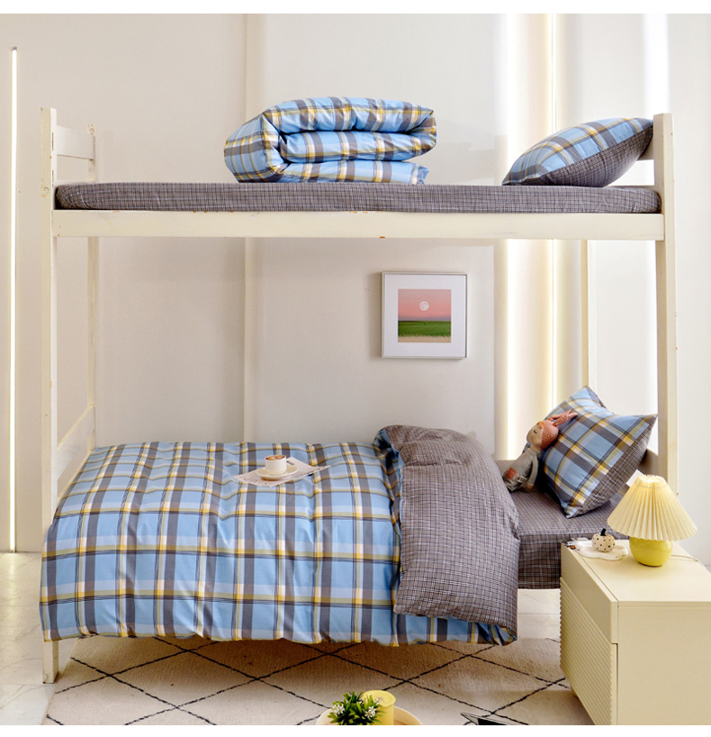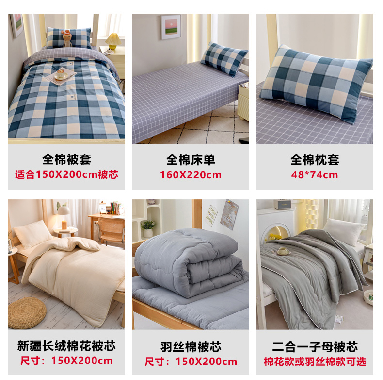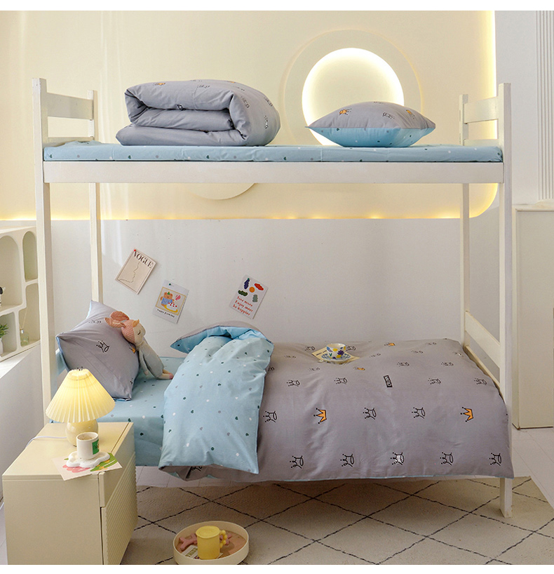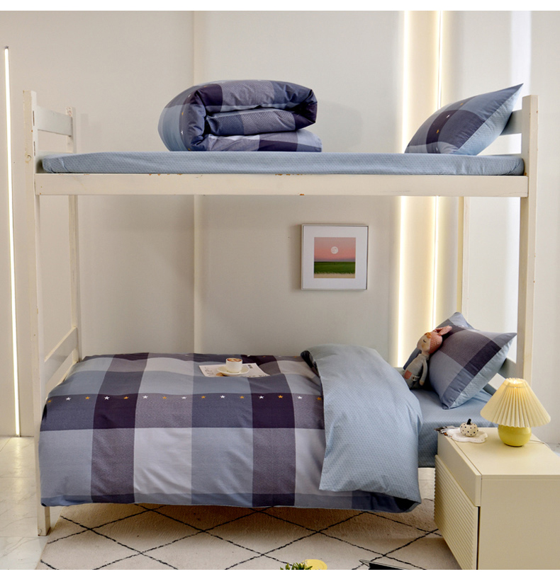 商品名称:(总)水妙家纺2025新款A类全棉学生宿舍五件套上下铺子母被六件套纯棉三件套-褥垫款(可订制)