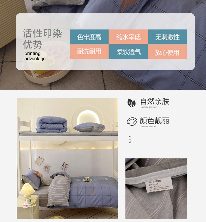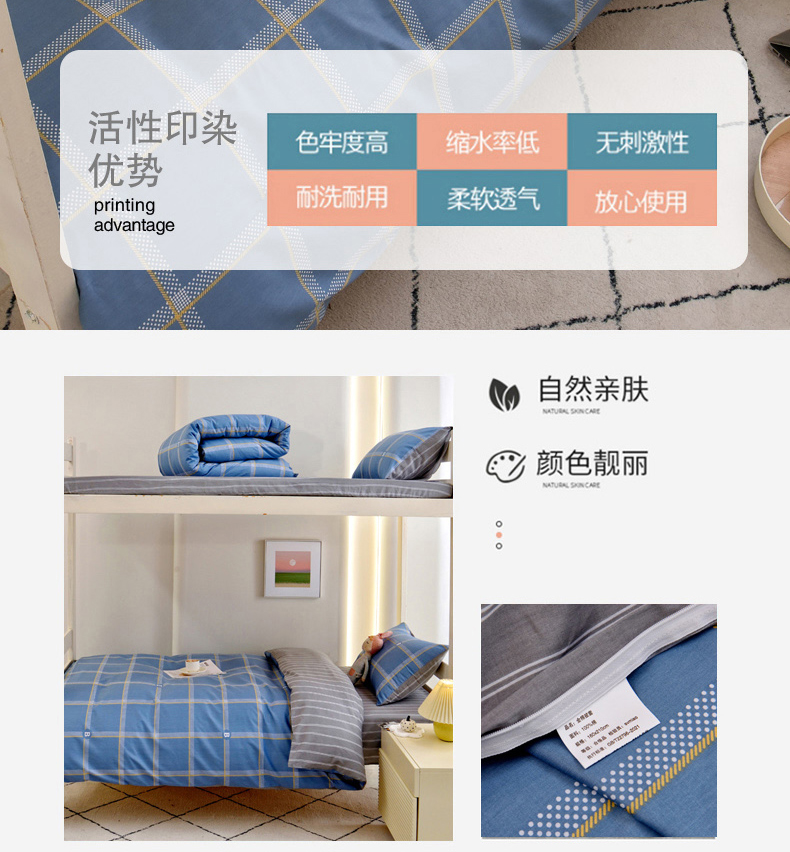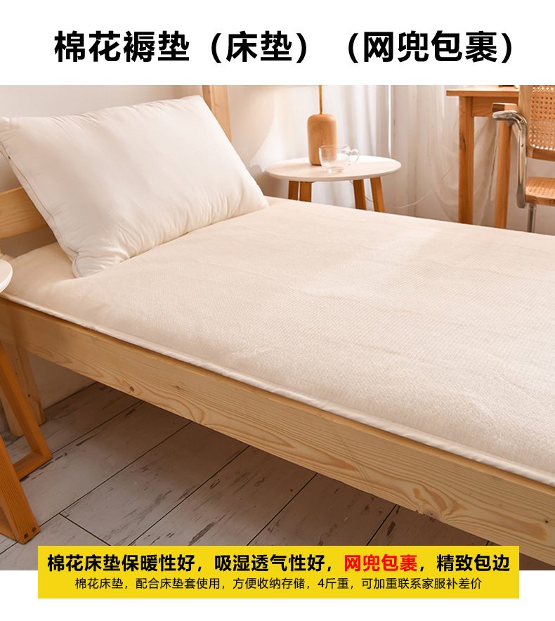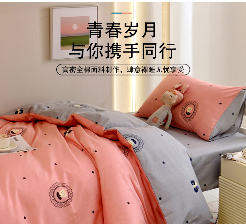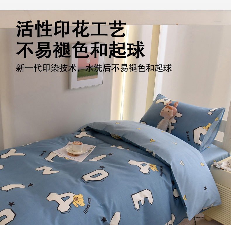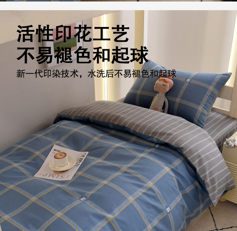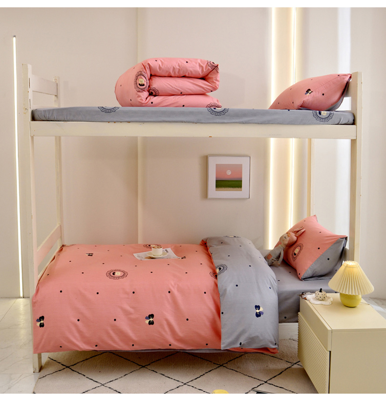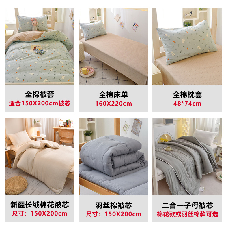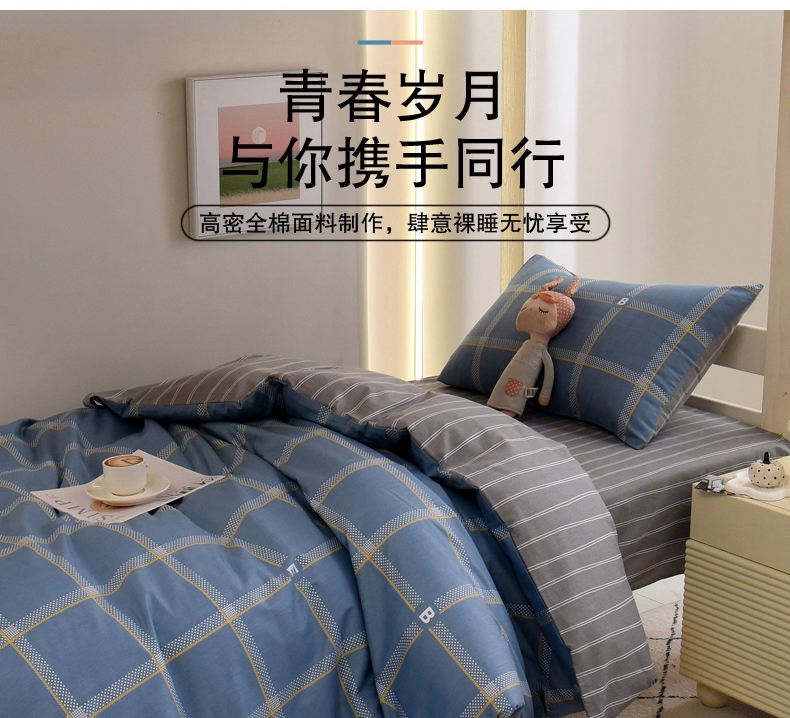 商品名称:(总)水妙家纺2025新款A类全棉学生宿舍五件套上下铺子母被六件套纯棉三件套-褥垫款(可订制)