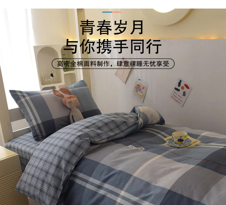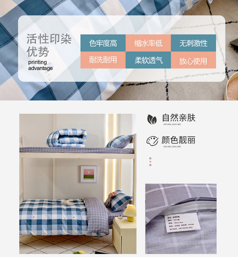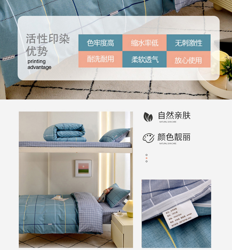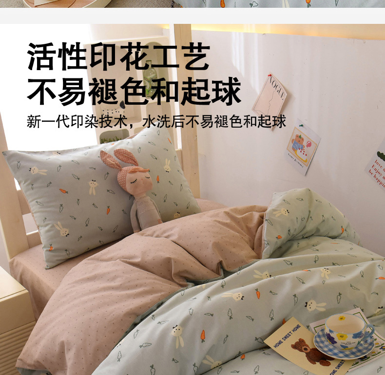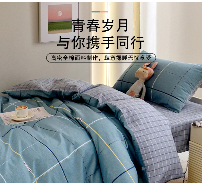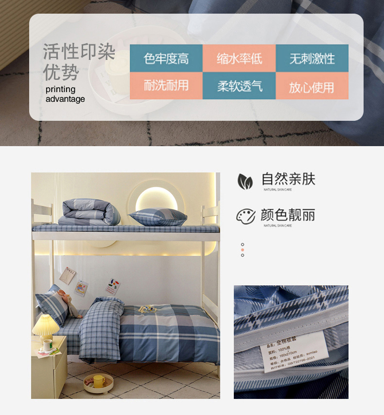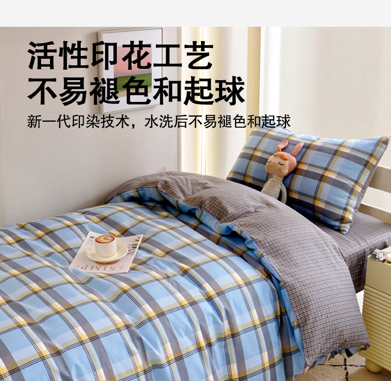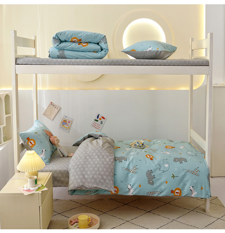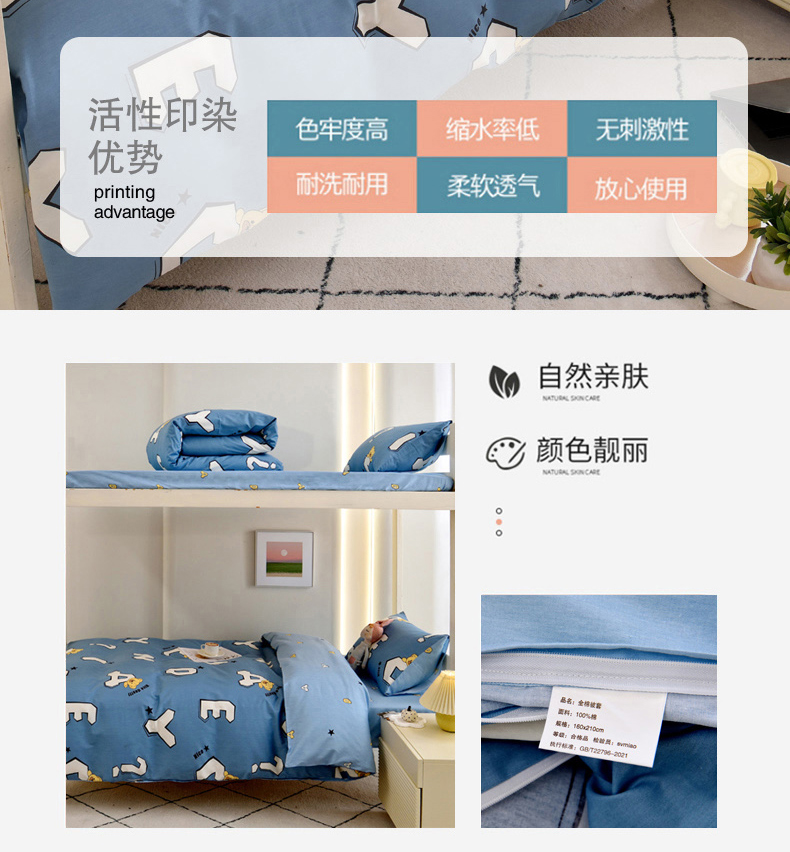 商品名称:(总)水妙家纺2025新款A类全棉学生宿舍五件套上下铺子母被六件套纯棉三件套-褥垫款(可订制)