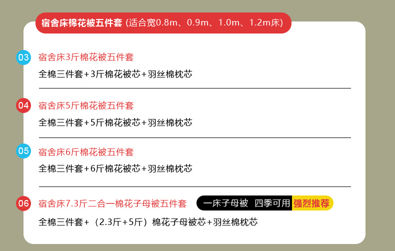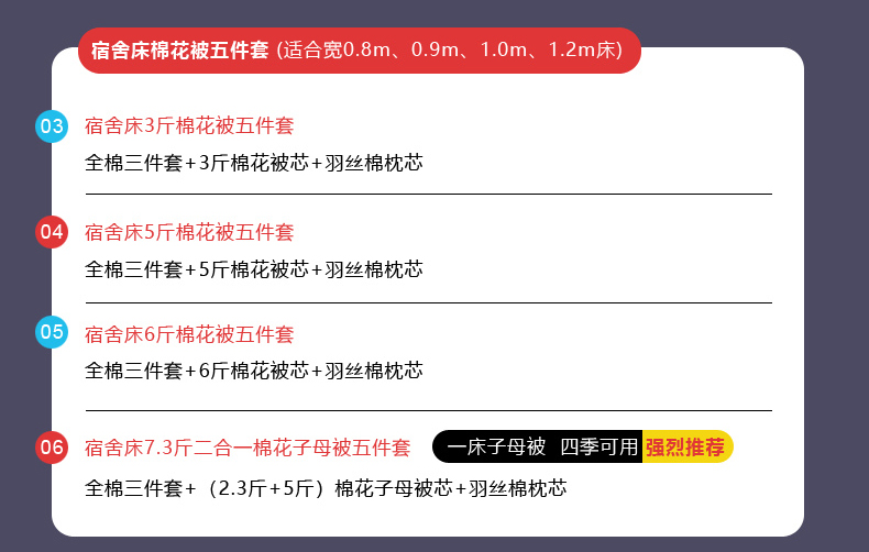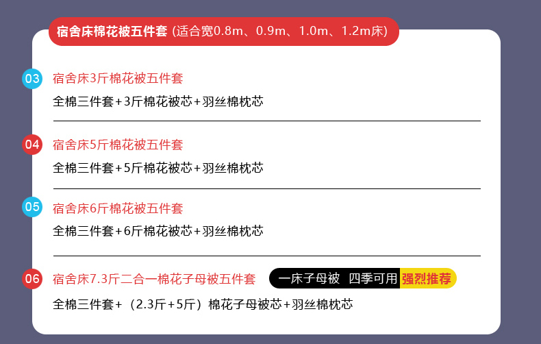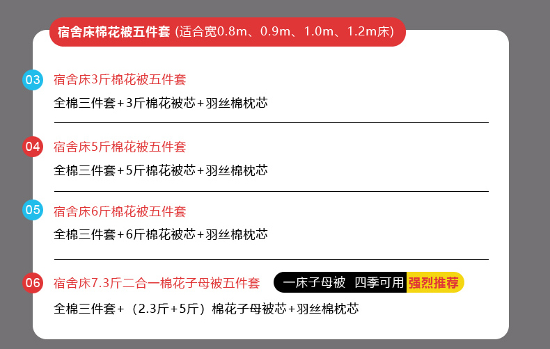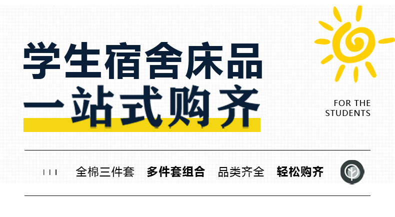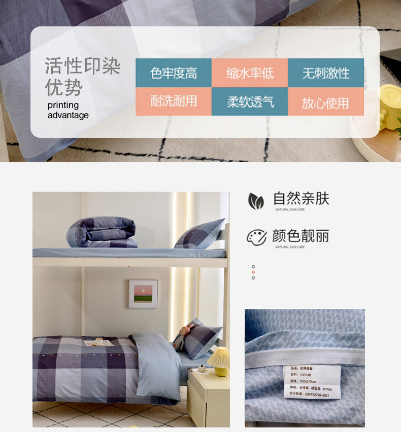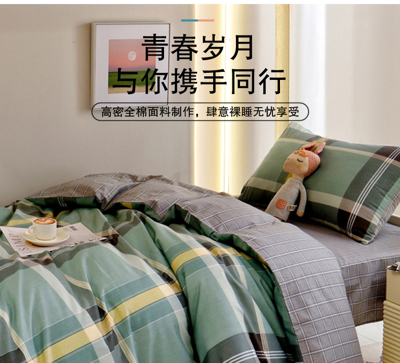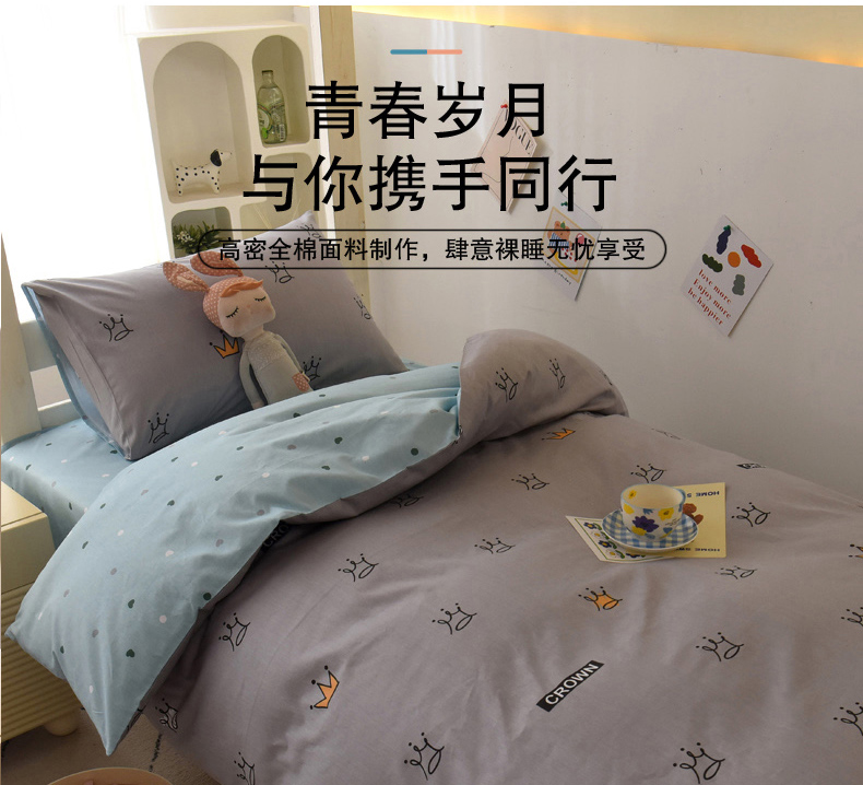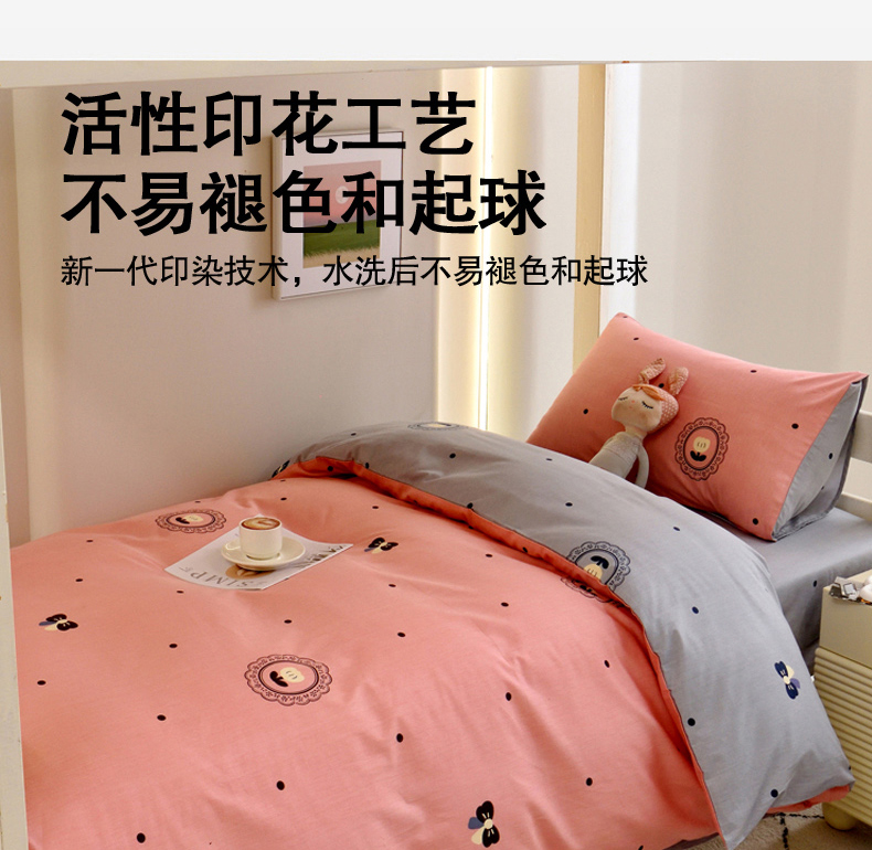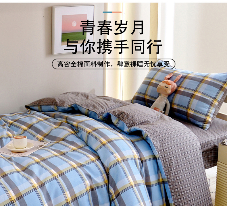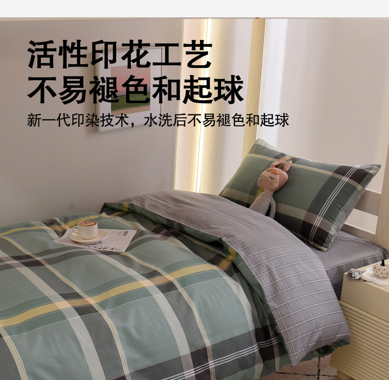 商品名称:(总)水妙家纺2025新款A类全棉学生宿舍五件套上下铺子母被六件套纯棉三件套-褥垫款(可订制)