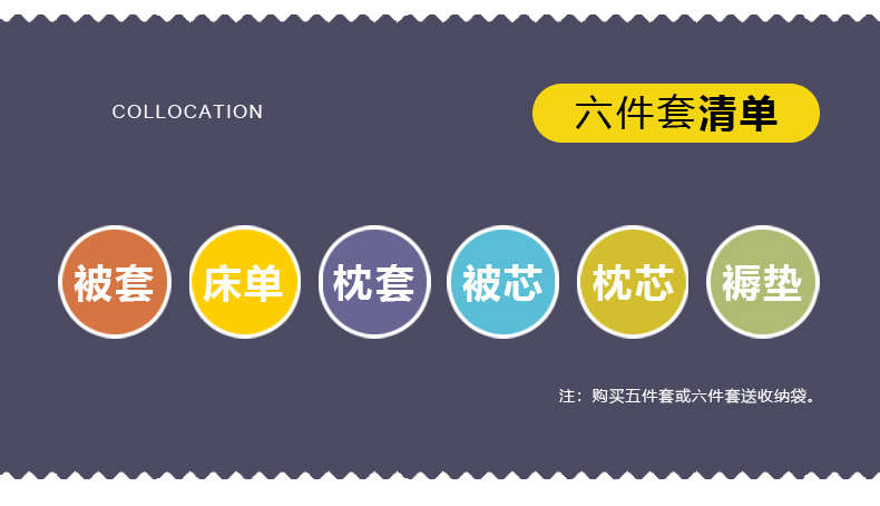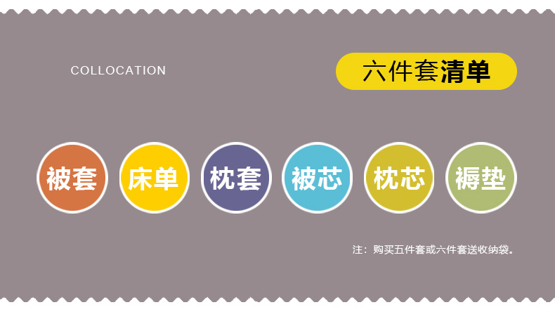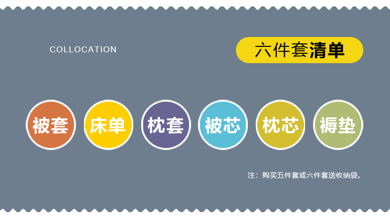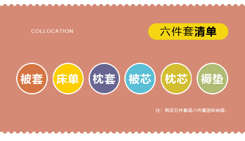 1.2m床6斤羽丝棉被六件套(全棉三件套+6斤羽丝棉被+4斤羽丝棉垫被+枕芯)