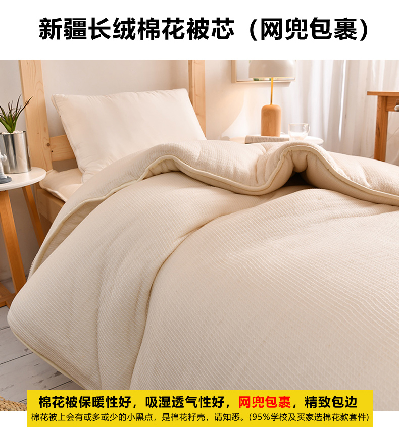 (总)水妙家纺 2025新款学生宿舍新疆长绒棉纯棉棉花鱼鳞网被芯棉胎被子上下铺褥垫棉花被褥,米色