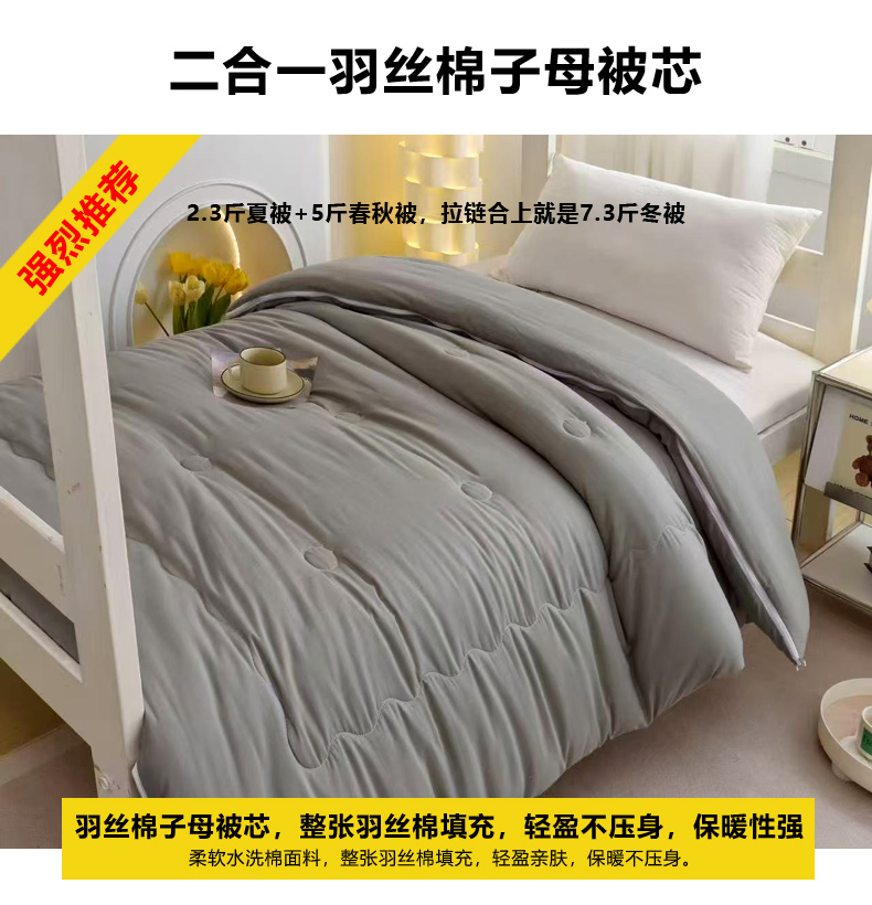 (总)水妙家纺 2025年新款学生宿舍上下铺拉链款羽丝棉子母被子被芯单被子床垫褥垫(可定制),主图仅供展示,羽丝棉褥垫,羽丝棉被,羽丝棉子母被
