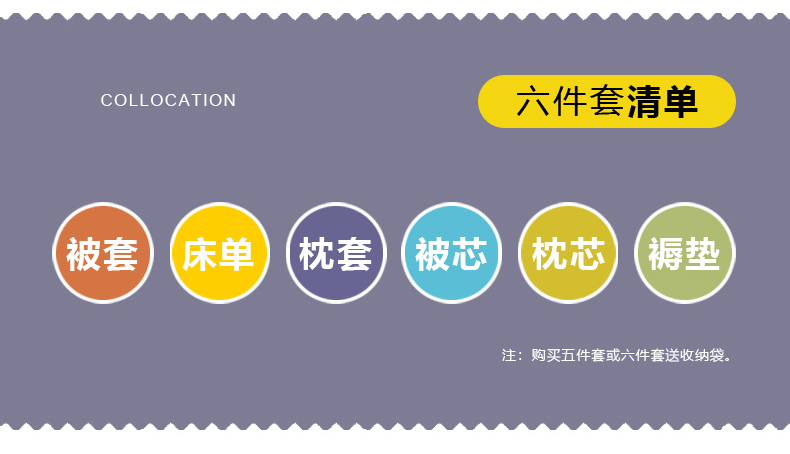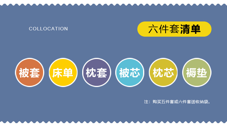 1.2m床3斤棉花被六件套(全棉三件套+3斤新疆棉花被+4斤棉花垫被+枕芯)