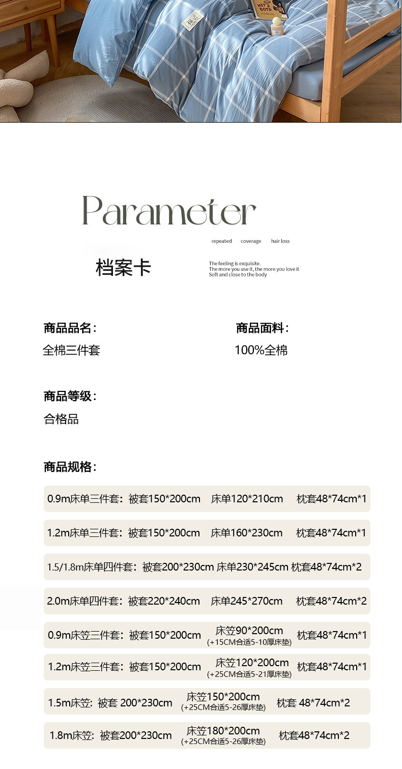 【床笠款】0.9三件套-被套150x200 | ¥77.00 |