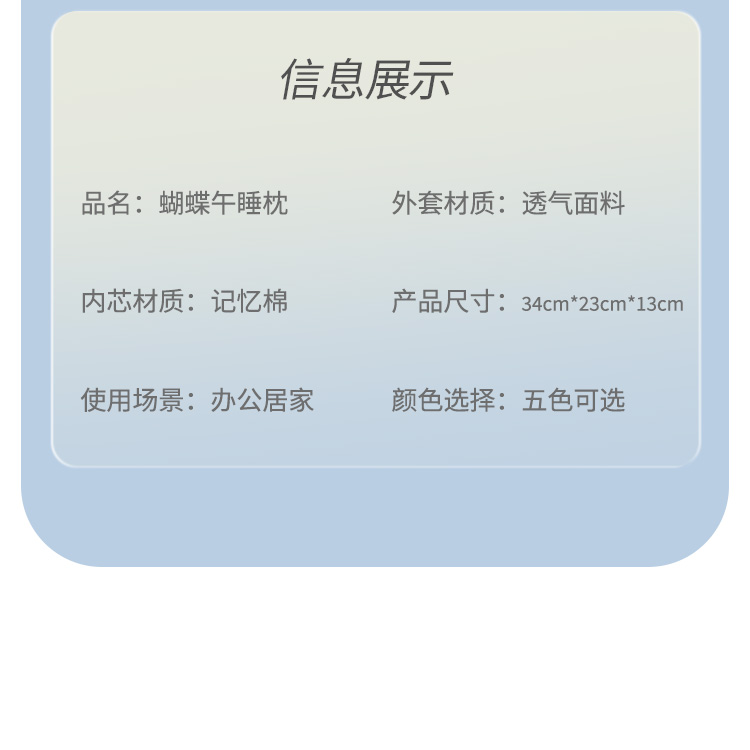 商品名称:(总)永光家居 2025新款匠心蝴蝶U型凉感午睡枕 记忆棉趴睡枕午休枕(不供多多)