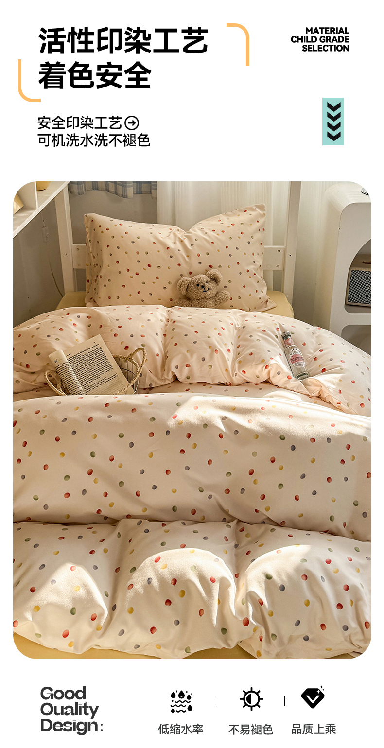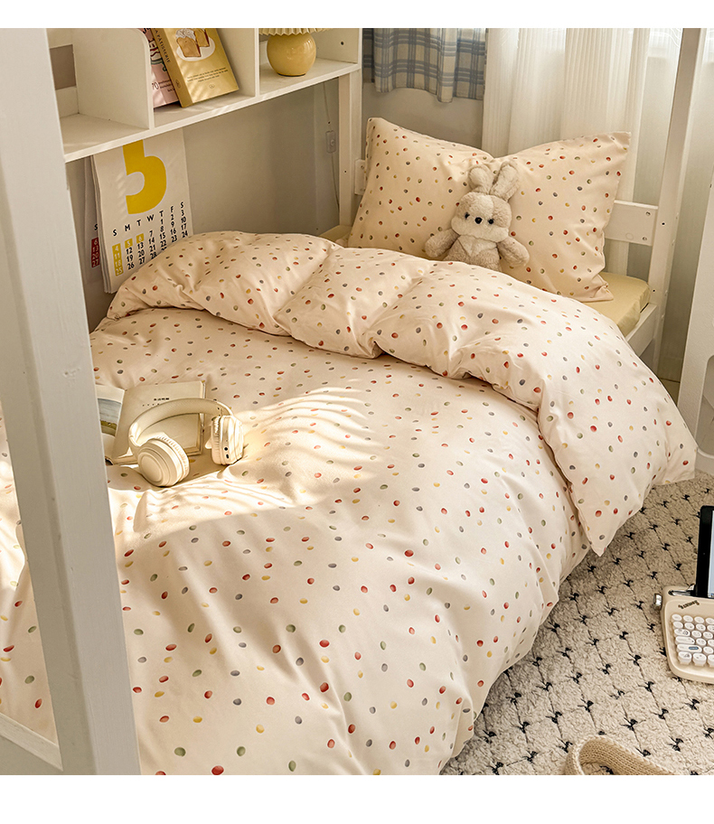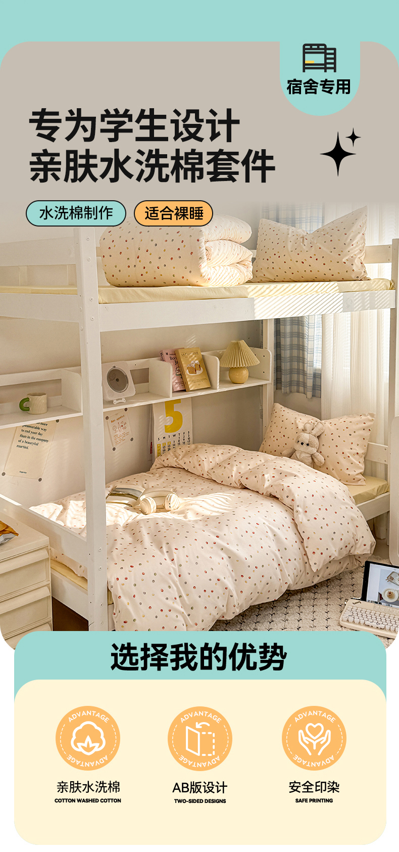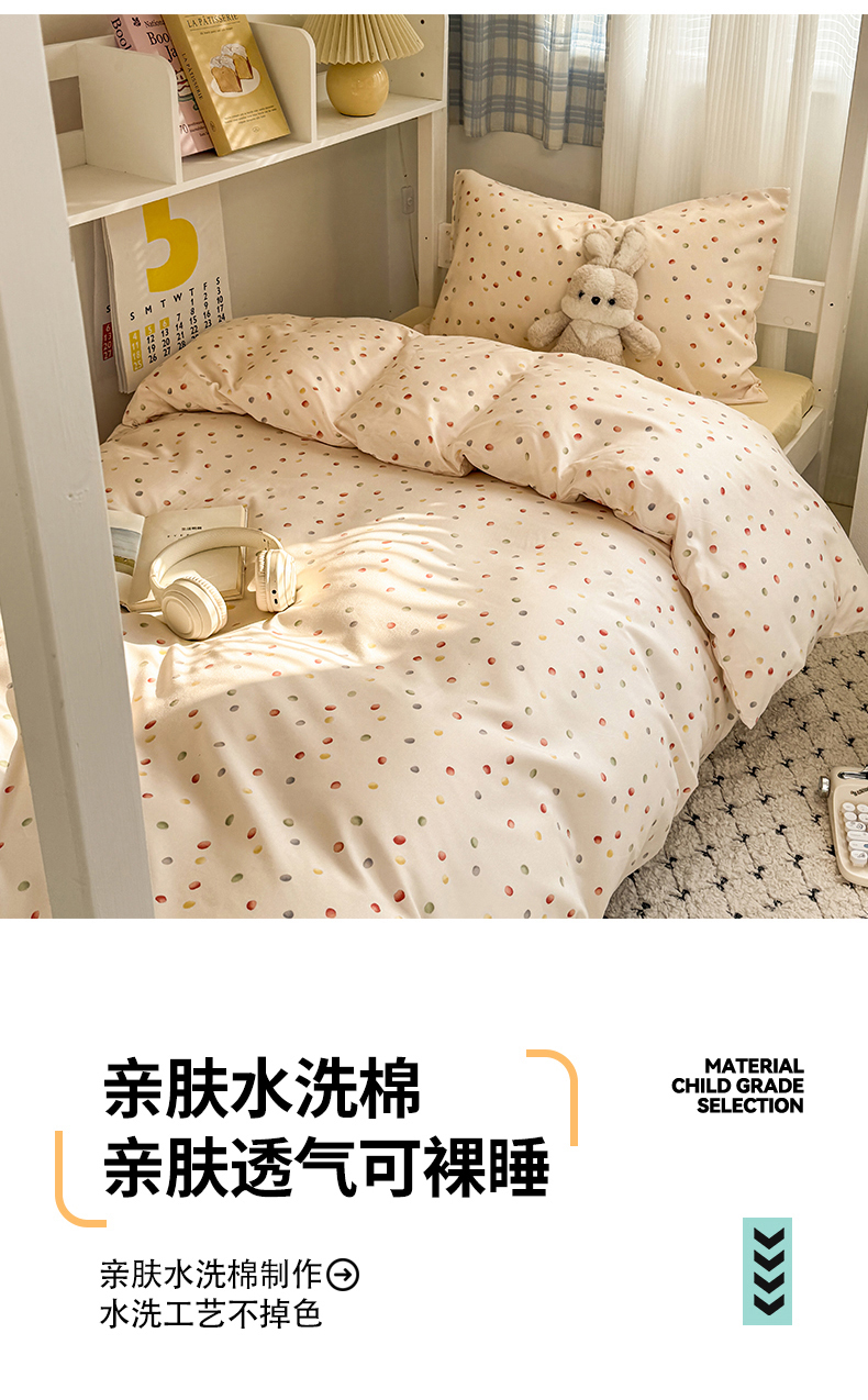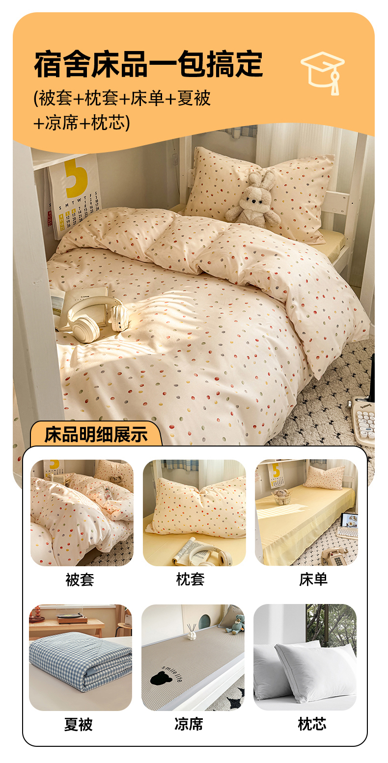 当前位置: 91家纺网 > 商品网购 > 床品套件 > 三件套 > 多品家纺 2025新款水洗棉学生宿舍上下铺大礼包三件套六件套 波点彩虹