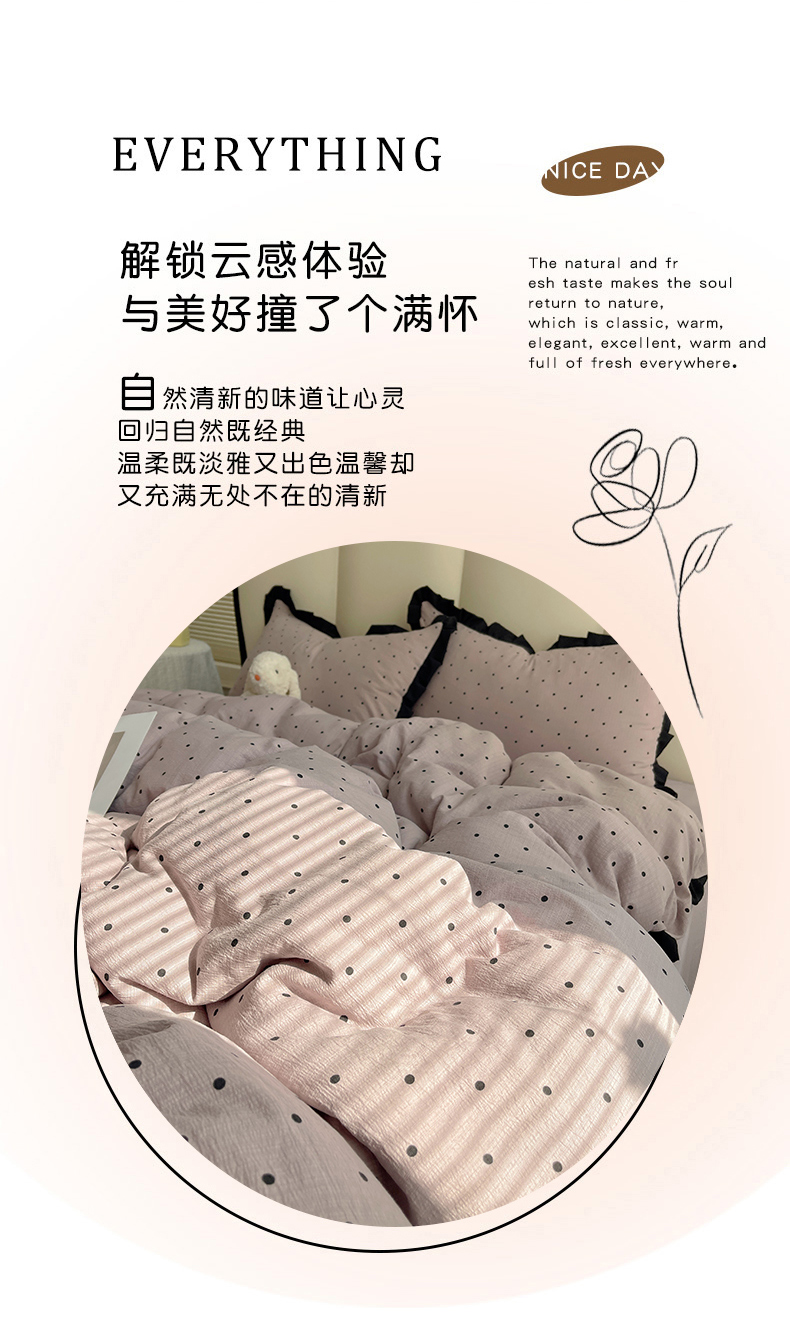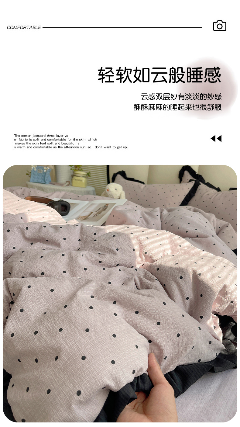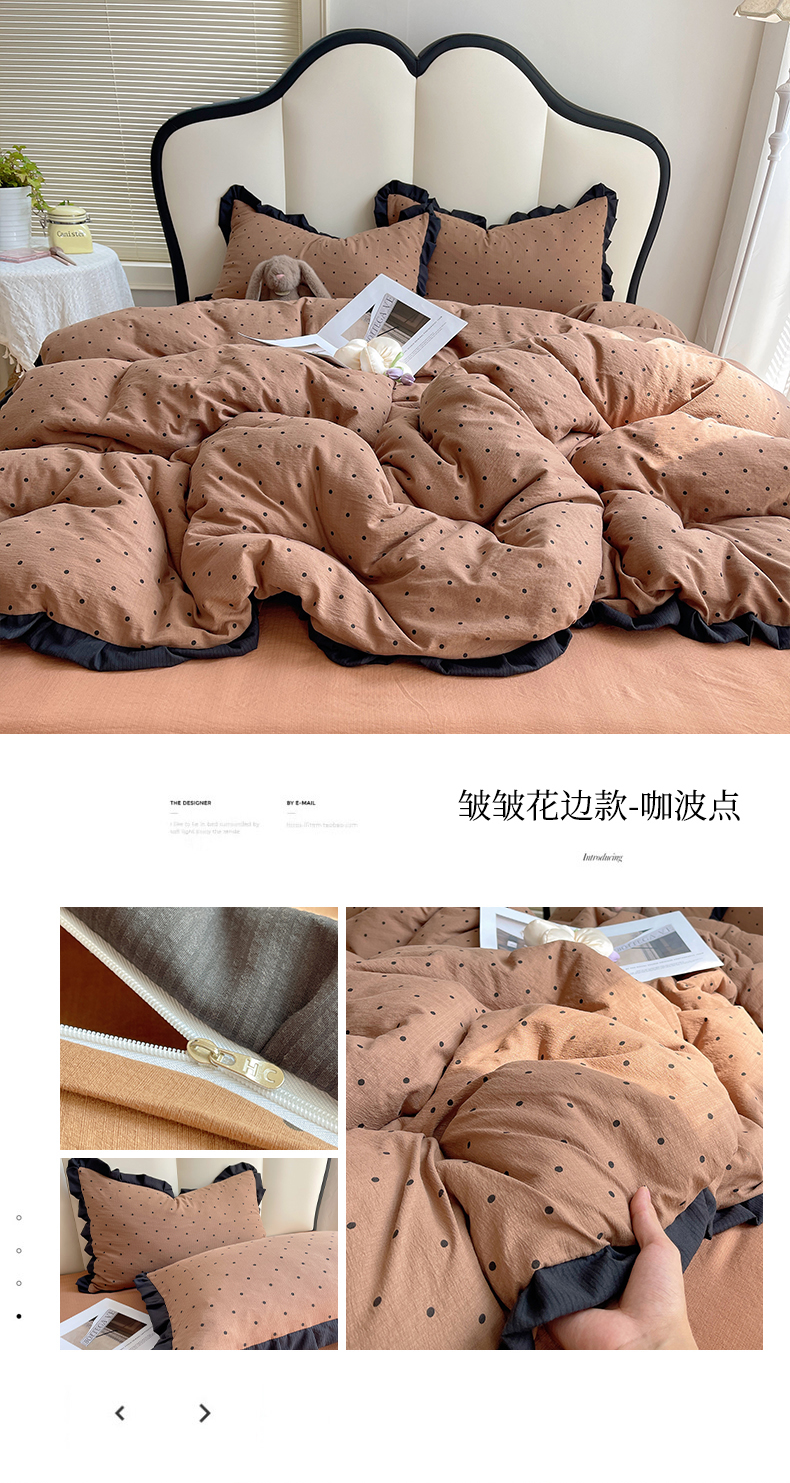 当前位置: 91家纺网 > 商品网购 > 床品套件 > 四件套 > 其它四件套 > 韩巢家纺 2025新款黑皱皱双层纱花边款被套四件套直播热销款学生宿舍床单三件套-(提供卖家秀) 黑丁香紫波点【黑皱皱花边款】