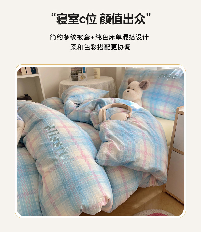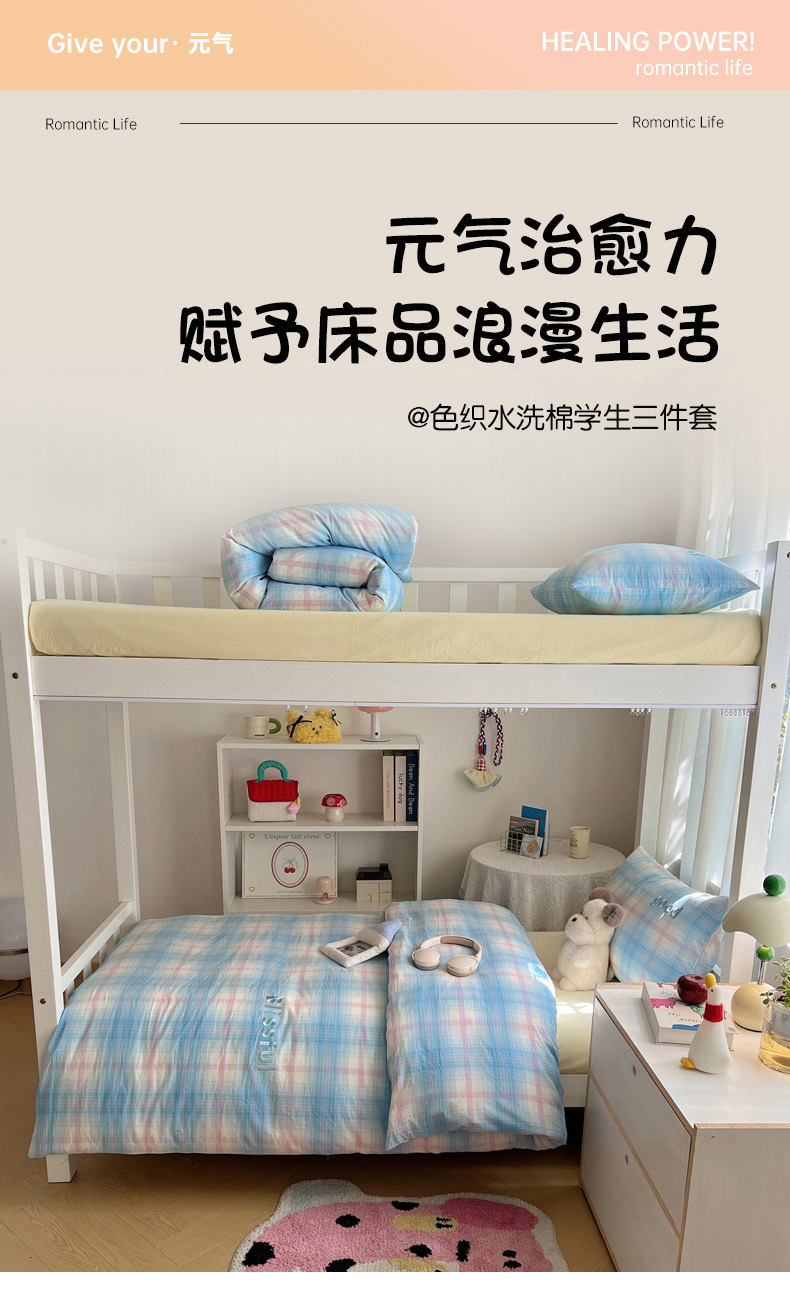 当前位置: 91家纺网 > 商品网购 > 床品套件 > 三件套 > 丽涵家纺 2025新款色织水洗棉刺绣学生三件套 梦想-兰